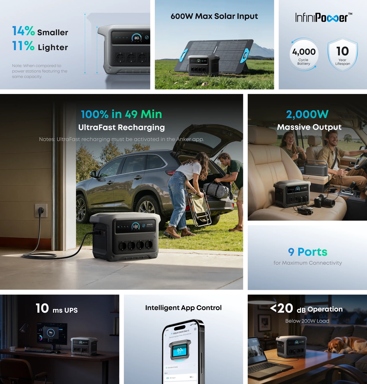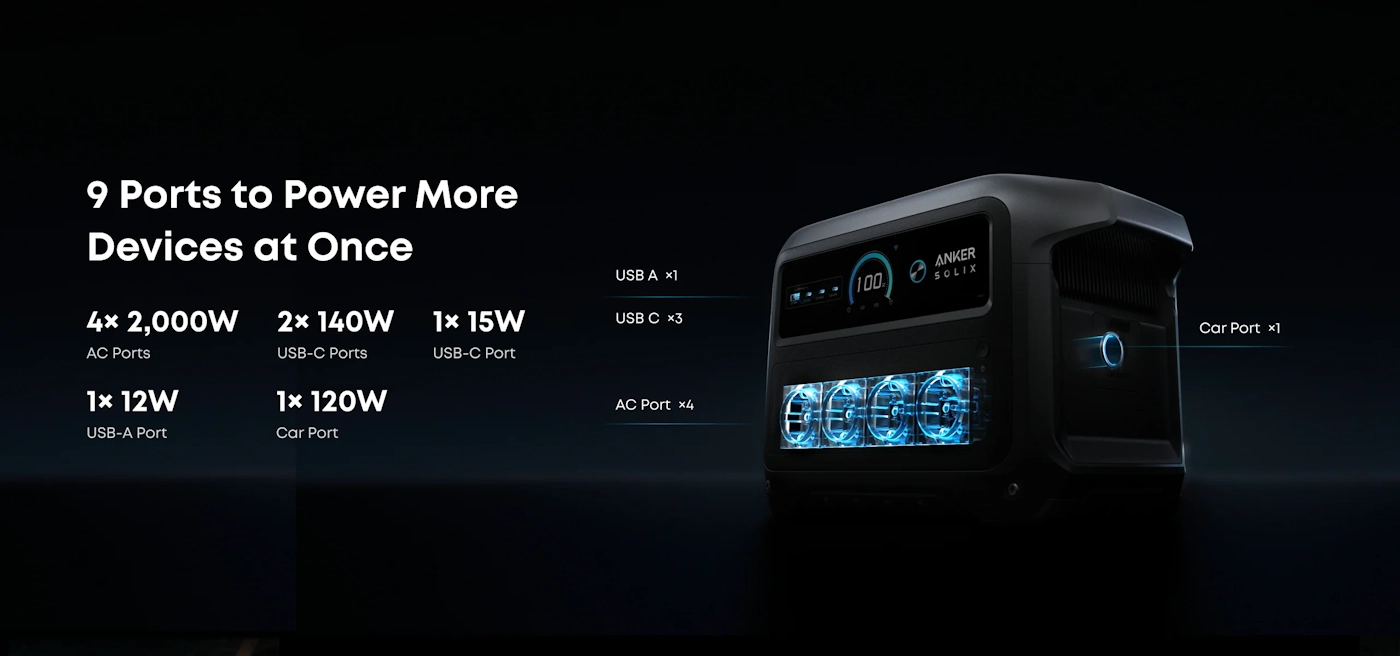 Sa izlaznom snagom od 2.000W, vršnom snagom do 3.000W i kapacitetom od 1.024Wh, možete napajati do 9 uređaja u bilo kojem trenutku.