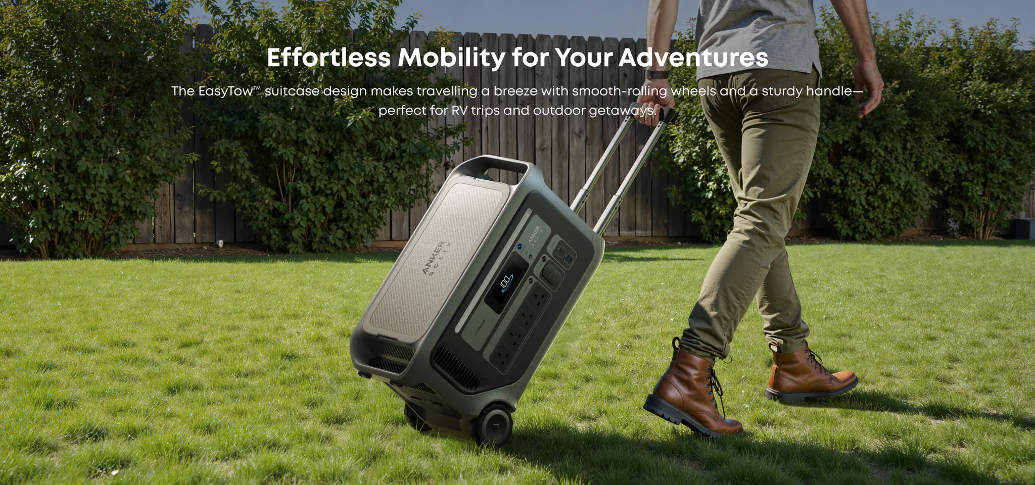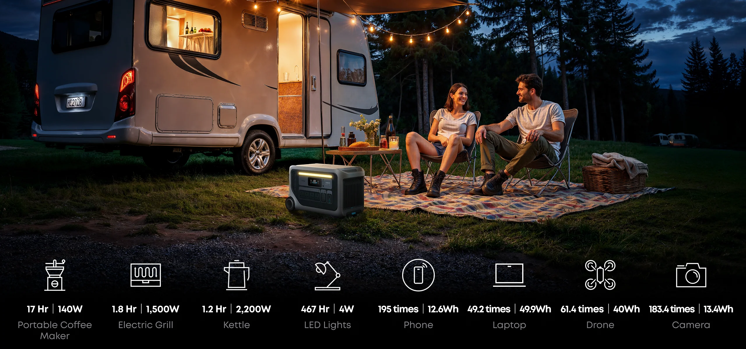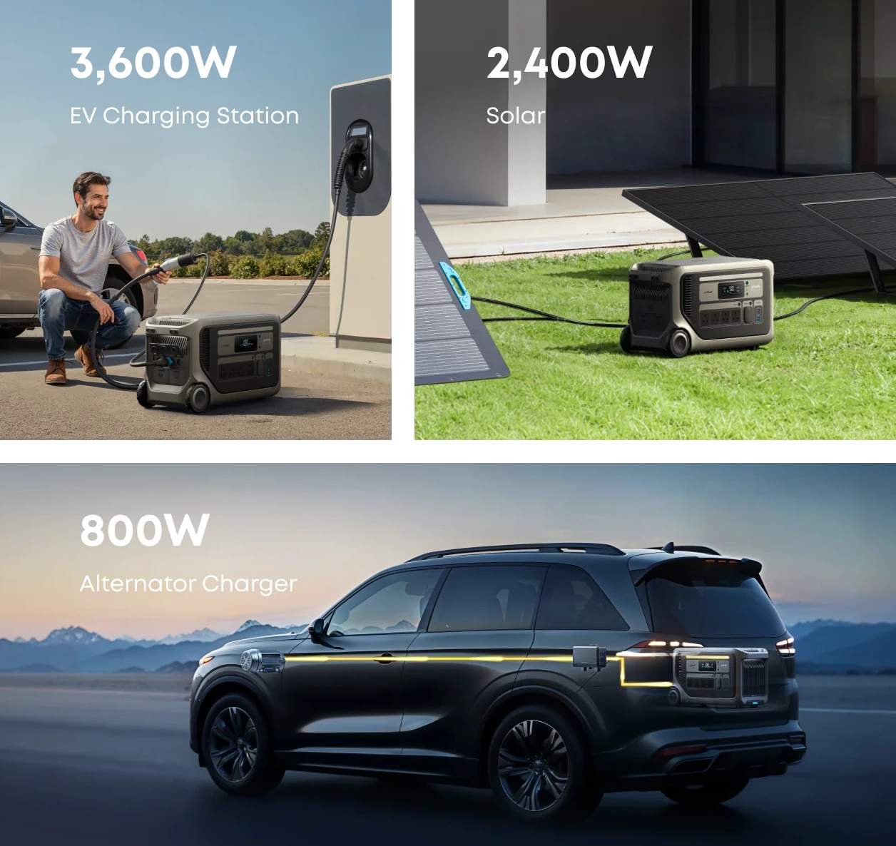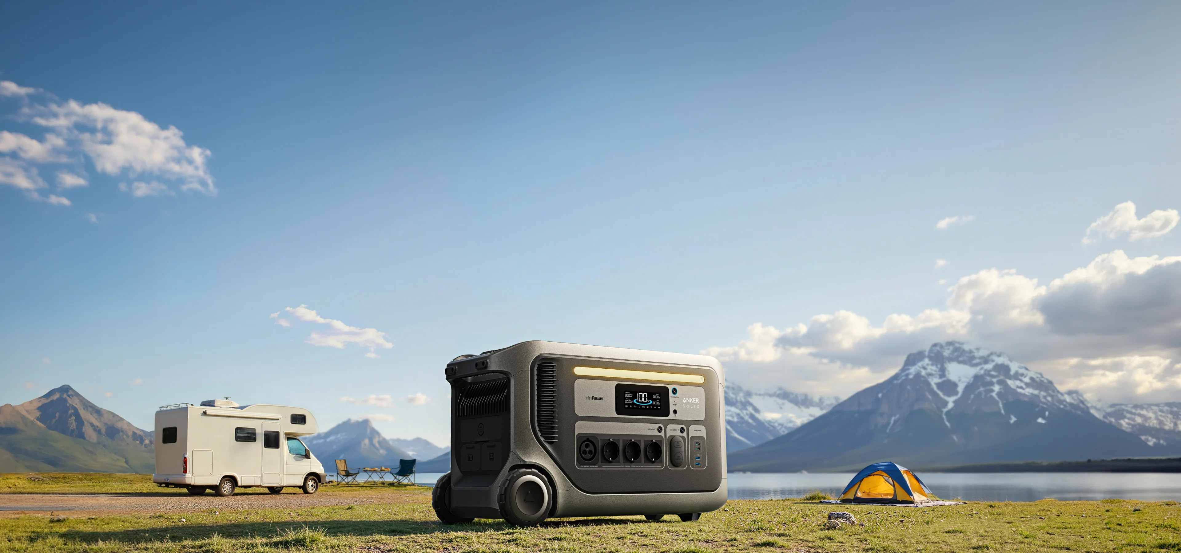 Flexible dual-voltage solar input (60V / 165V) delivers up to 2,400W—ideal for off-grid adventures.