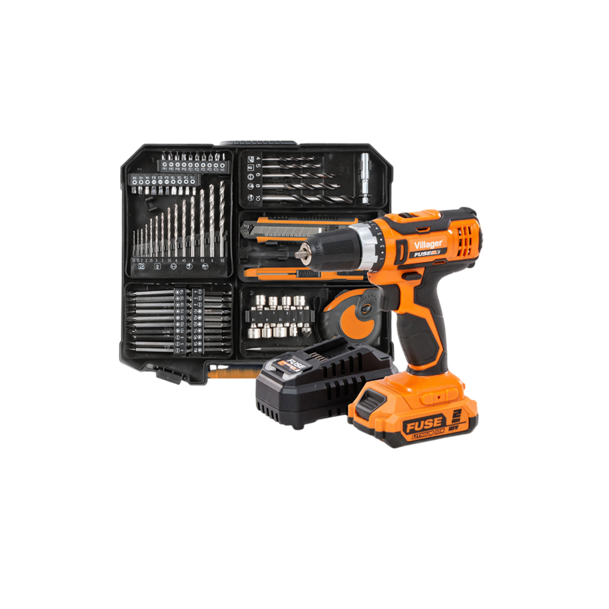 Aku bušilica – odvijač Villager VLN 3220 sa baterijom 2.0Ah i punjačem sa dodacima