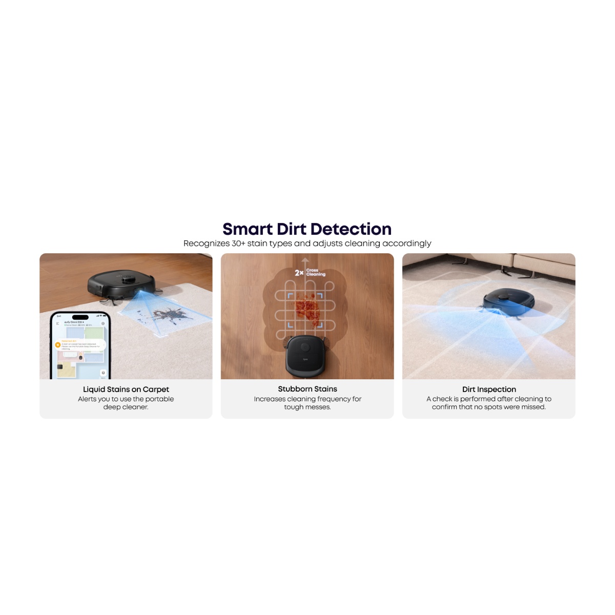 Pametna navigacija koristi kombinaciju LiDAR senzora i RGB kamere sa LED osvetljenjem kako bi robot precizno mapirao prostor, izbegavao prepreke i optimizovao rutu čišćenja. Sistem podržava mapiranje više spratova, definisanje zona čišćenja, no-go oblasti i individualna podešavanja za svaku prostoriju.