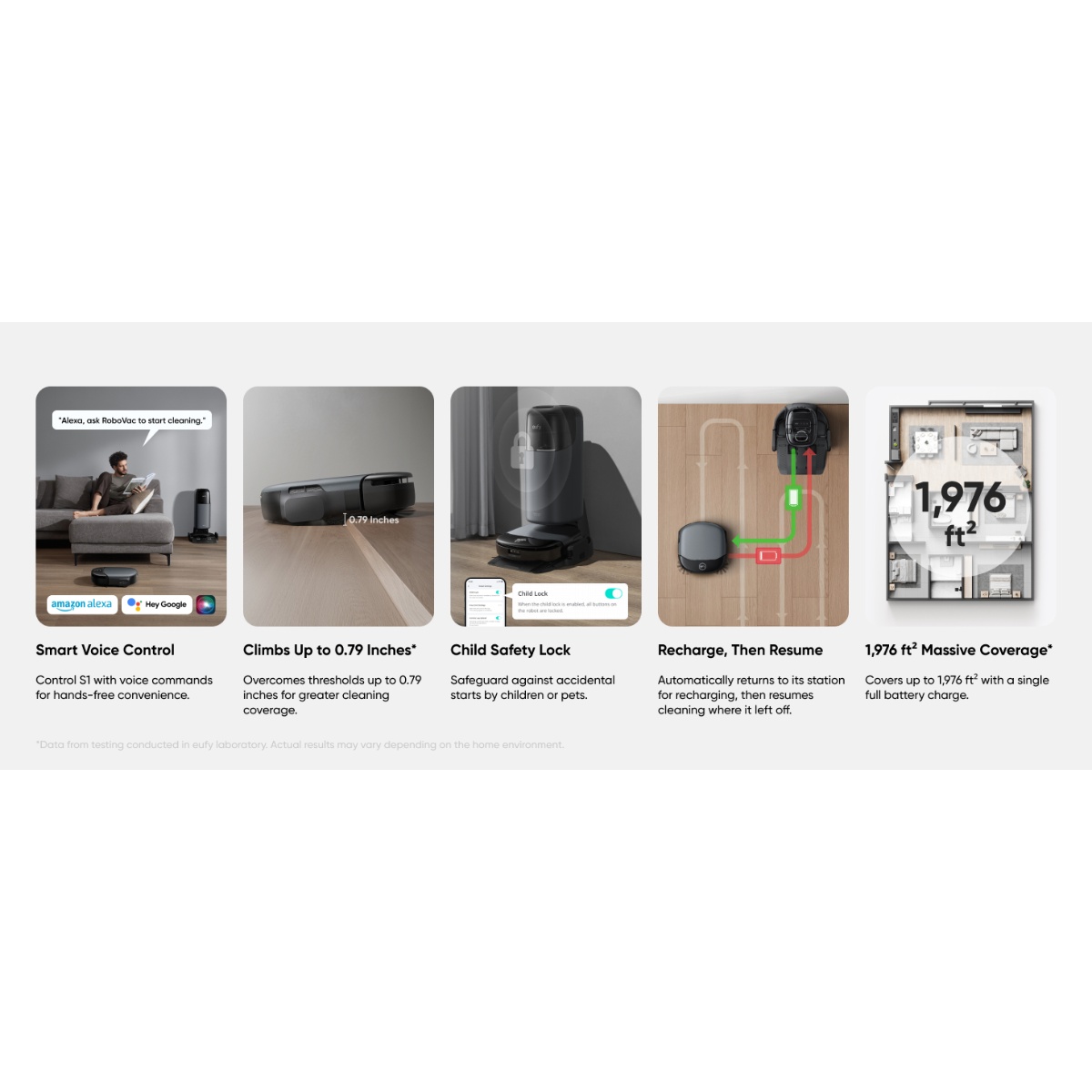 Pametne funkcije poput glasovne kontrole, podešavanja preko aplikacije, više mapa po spratu, no‑go zona i rasporeda čišćenja omogućavaju personalizovano upravljanje i maksimalnu fleksibilnost za sve tipove prostora. Zahvaljujući ovim karakteristikama, eufy Robot Vacuum Omni S1 predstavlja jedno od najkompletnijih rješenja za automatizovano čišćenje modernog doma.