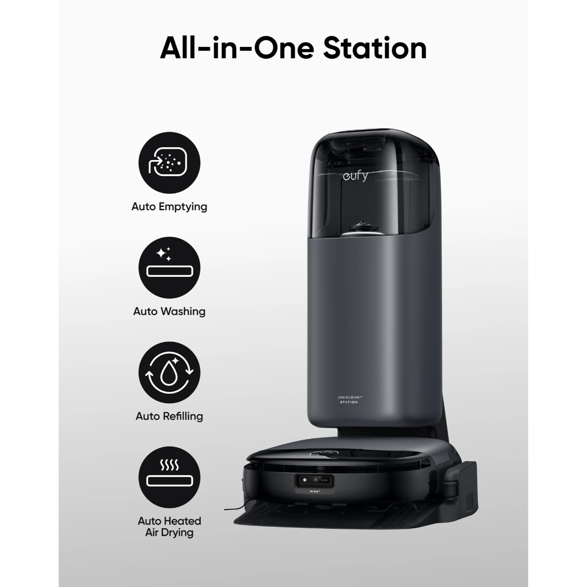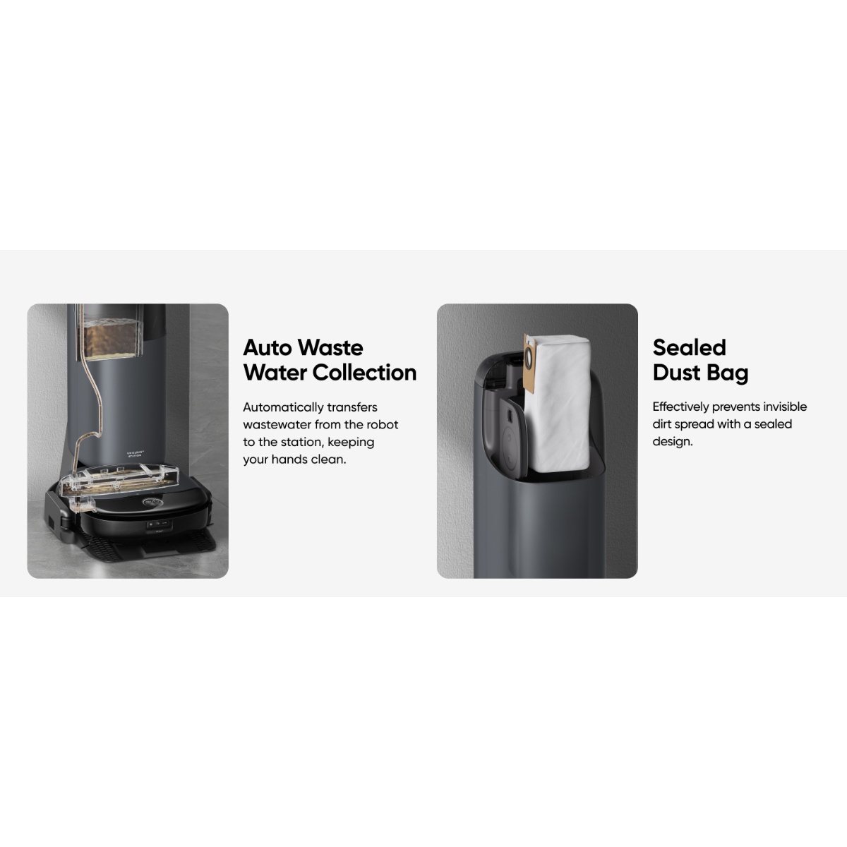 All‑in‑One stanica omogućava automatsko pražnjenje prašine, pranje, grijanje i sušenje mop krpa, automatsko dopunjavanje čiste vode i prikupljanje prljave vode. Uz antibakterijski dust bag, digitalnu LCD kontrolu i 20 % brže punjenje, Omni S1 pruža jednostavno i potpuno autonomno čišćenje doma.