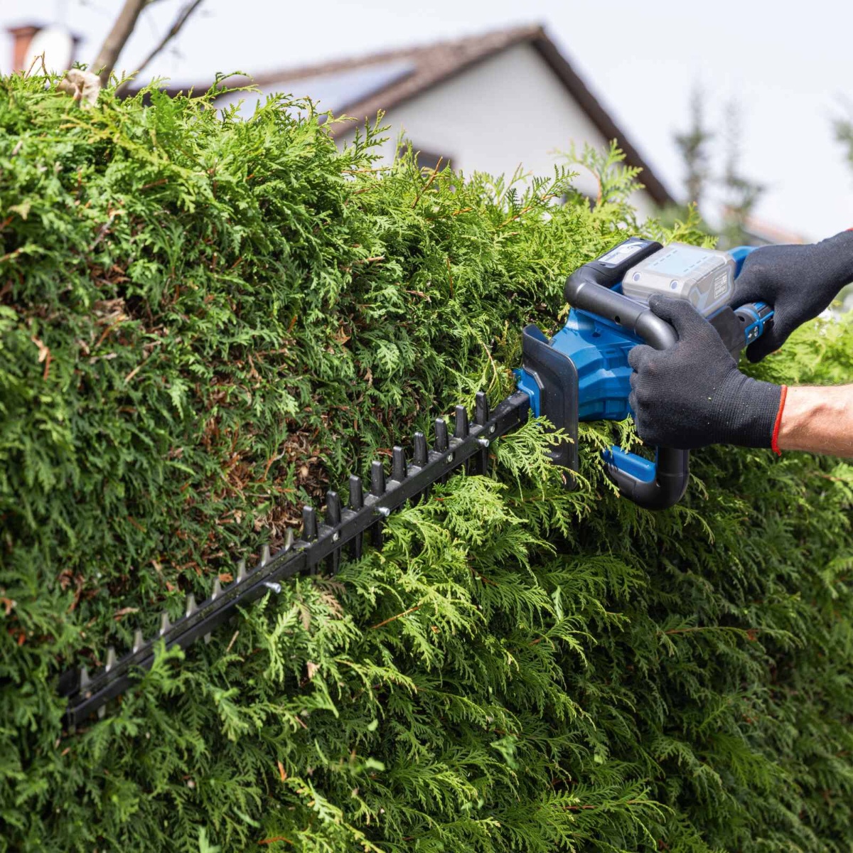 Scheppach akumulatorske makaze za živu ogradu BC-HT720-X moćan je pomoćnik pri šišanju živih ograda, grmlja ili grmlja. Napajan pomoću 2x 20 voltnih baterija, trimer za živu ogradu omogućava bežični rad bez emisija u kućnom vrtu. Sa do 2700 rezova u minuti i dužinom sečenja od 650 mm, moguć je brz napredak u radu. Laserski rezan nož dvostrukog djelovanja sa aluminijskom vodilicom sa metalnim graničnikom osigurava precizne, čiste rezultate rezanja. Akumulatorske makaze za živu ogradu pokreće snažan motor bez četkica. Ovaj motor bez četkica osigurava posebno visoku efikasnost, duže vrijeme rada, dug vijek trajanja i manje habanje. Kao dio Scheppach IXES 20-voltne serije, sve baterije i punjači iz serije sistema mogu se kombinovati