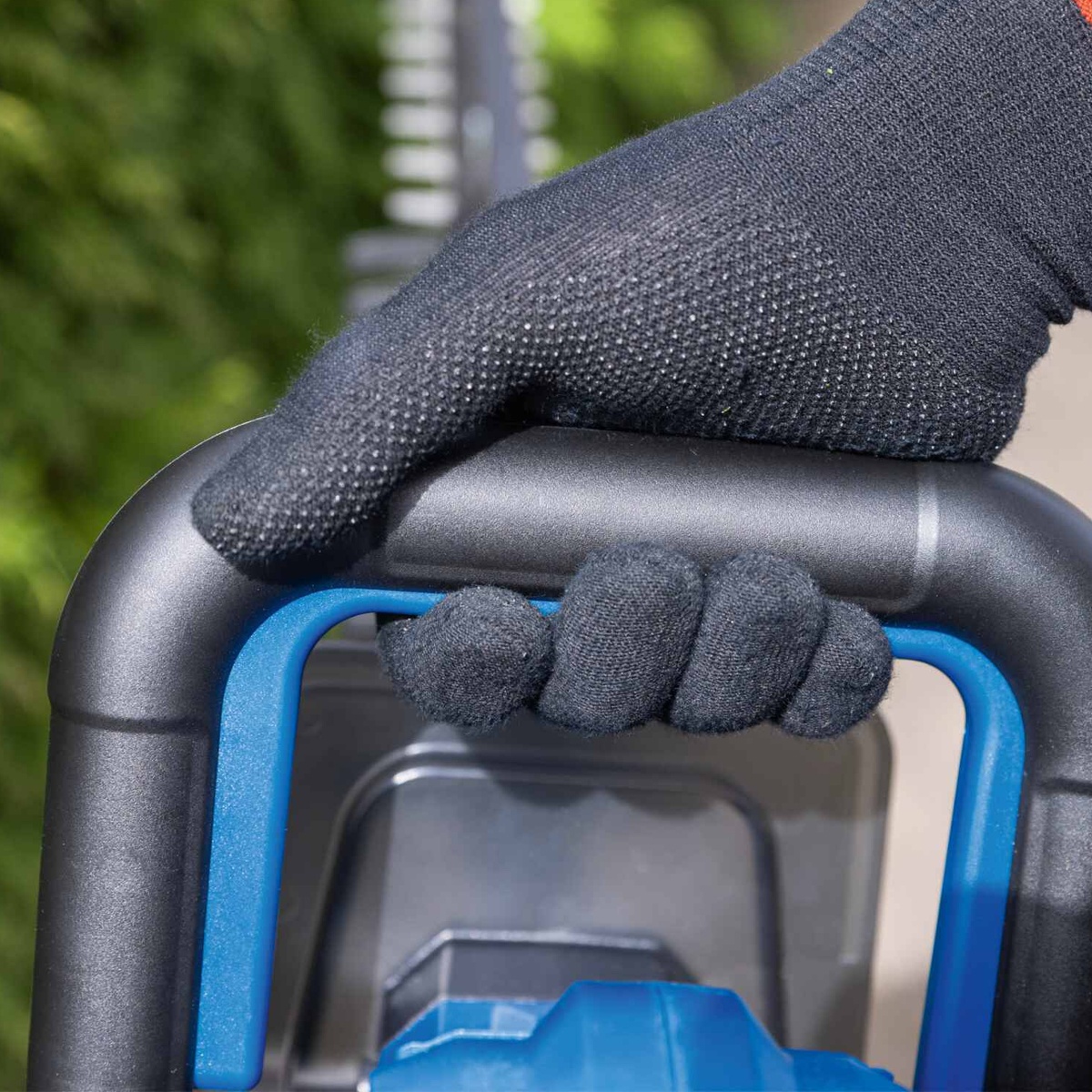 Scheppach akumulatorske makaze za živu ogradu BC-HT720-X moćan je pomoćnik pri šišanju živih ograda, grmlja ili grmlja. Napajan pomoću 2x 20 voltnih baterija, trimer za živu ogradu omogućava bežični rad bez emisija u kućnom vrtu. Sa do 2700 rezova u minuti i dužinom sečenja od 650 mm, moguć je brz napredak u radu. Laserski rezan nož dvostrukog djelovanja sa aluminijskom vodilicom sa metalnim graničnikom osigurava precizne, čiste rezultate rezanja. Akumulatorske makaze za živu ogradu pokreće snažan motor bez četkica. Ovaj motor bez četkica osigurava posebno visoku efikasnost, duže vrijeme rada, dug vijek trajanja i manje habanje. Kao dio Scheppach IXES 20-voltne serije, sve baterije i punjači iz serije sistema mogu se kombinovati