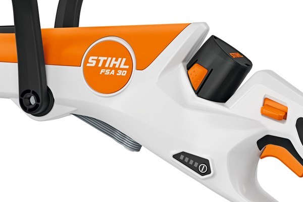 Ako još nemate bateriju i punjač iz STIHL AS sistema, isplati se kupiti STIHL FSA 30 u setu s litij-ionskom baterijom STIHL AS 2 i punjačem STIHL AL 1 jer svaki drugi uređaj iz AS sistema kompatibilan je s AS 2 baterijom i punjačem. STIHL FSA 30 standardno je opremljen glavom za košenje STIHL PolyCut 3-2 s dva robusna PolyCut plastična noža. Za brzu izmjenu noževa, 6 zamjenskih PolyCut noževa može se pohraniti izravno na uređaju i zamijeniti na glavi za košenje bez potrebe za alata. FSA 30 možete koristiti i s AutoCut C 3-2 glavom za kođenje, koja je dostupna kao dodatni pribor, i s nitima za košnju promjera 1,4 mm. Zahvaljujući ergonomskom dizajnu, fleksibilnim mogućnostima podešavanja i maloj težini od samo 2,3 kg uključujući bateriju, FSA 30 vam omogućuje udoban rad bez napora. Mekana upravljačka ručka dobro leži u ruci te omogućuje jednostavno i intuitivno upravljanje. Za prilagodbu uređaja pri radu vašoj visini teleskopska osovina i ručka mogu se postepeno podešavati pritiskom na tipku na uređaju. Za još veću udobnost pri radu i rukovanju, radni kut reznog mehanizma može se jednostavno prilagoditi, a glava za košnju može se zakrenuti za 90° za preciznu košnju rubova travnjaka. Sklopivi graničnik košnje može se preklapati gore-dole kako bi se osigurala precizna i sigurna košnja oko drveća, grmlja i drugih prepreka. Za uštedu prostora, akumulatorski trimer FSA 30 opremljen je praktičnom ušicom za skladištenje uređaja na zid garaže ili spremišta za alate. Uređaj se isporučuje sa baterijom i punjačem