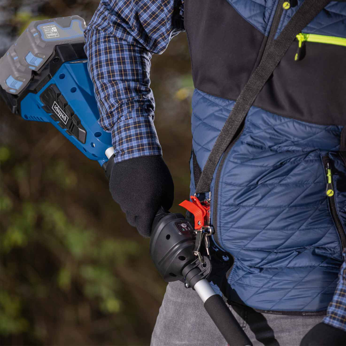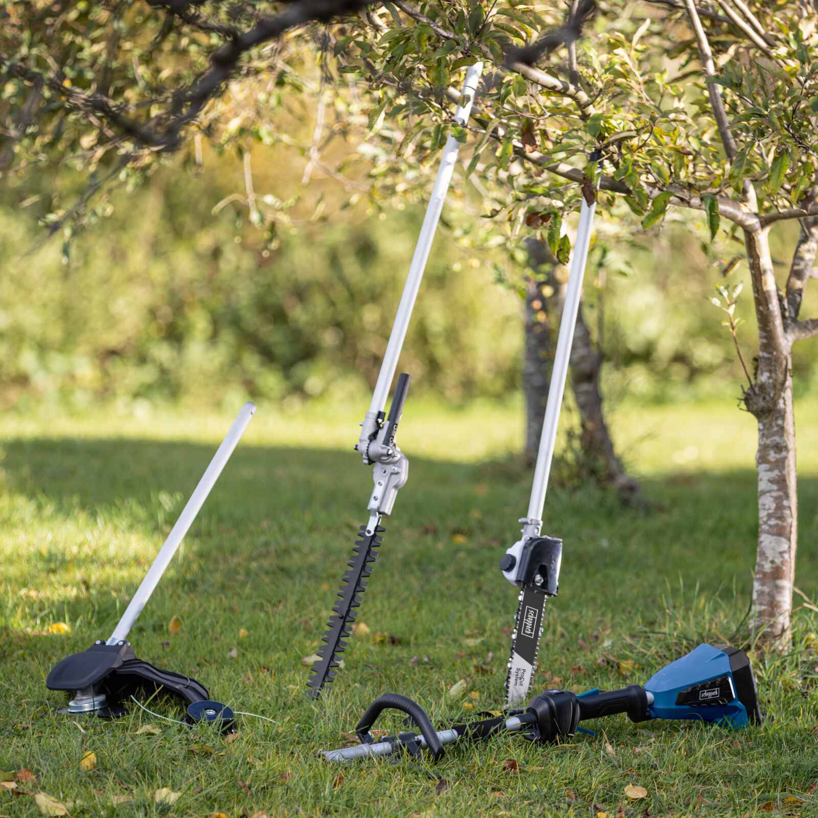 Scheppach aku multifunkcionalni trimer BC-MFH400-X kombinuje trimer za travu, makaze, trimer za živu ogradu i makaze u jednom uređaju. Različiti priključci se mogu mijenjati brzo i bez alata. Dodatna ručka i naramenica sa uređajem za brzo otpuštanje omogućavaju ergonomski rad. Baštenski višenamenski alat pokreće snažan motor bez četkica. Ovaj motor bez četkica osigurava posebno visoku efikasnost, duže vrijeme rada, dug vijek trajanja i manje habanje. Kao dio Scheppach IXES 20-voltne serije, sve baterije i punjači iz serije sistema mogu se kombinovati sa multifunkcionalnim uređajem.