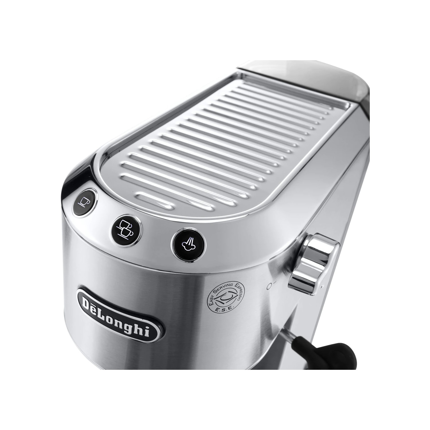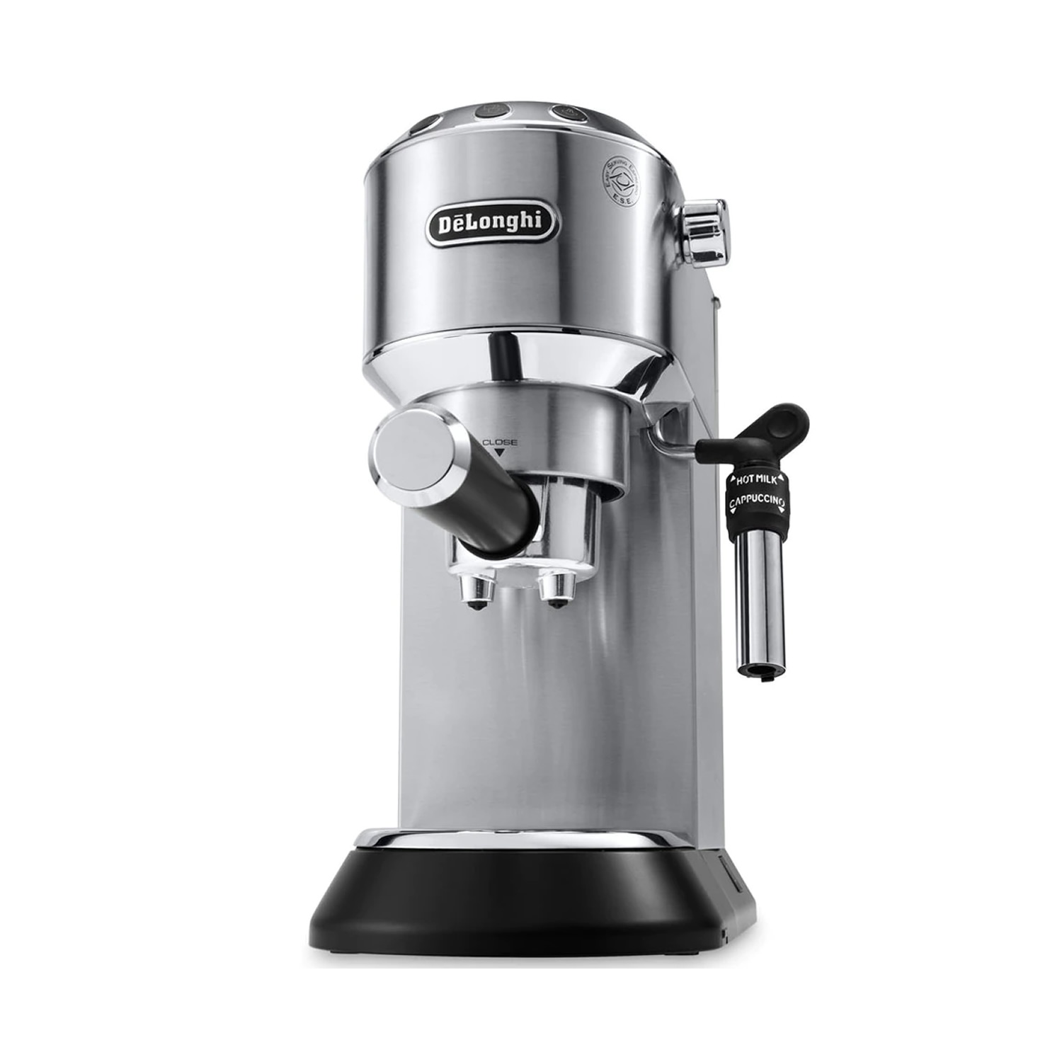 Elegantan i kompaktan aparat za kavu dizajniran kao dodatak vašoj kuhinjskoj radnoj površini. Uz kućište od nehrđajućeg čelika i sjajnu metalnu završnu obradu, aparat za espresso Dedica unosi dašak autentičnog talijanskog dizajna u svaku kuhinju. Uživajte u bogatom, glatkom espressu te zagrijte mlijeko na pari ili izradite kremastu mliječnu pjenu za svoju kavu pomoću prilagodljivog Sustava za cappuccino.
