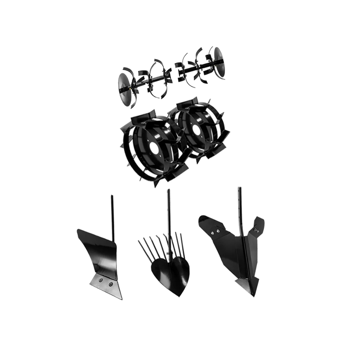 Dvostrani plug; Freza s noževima; Jednostrani plug; Metalni točkovi za oranje; Standardni gumeni točkovi; Vadilica krompira; |