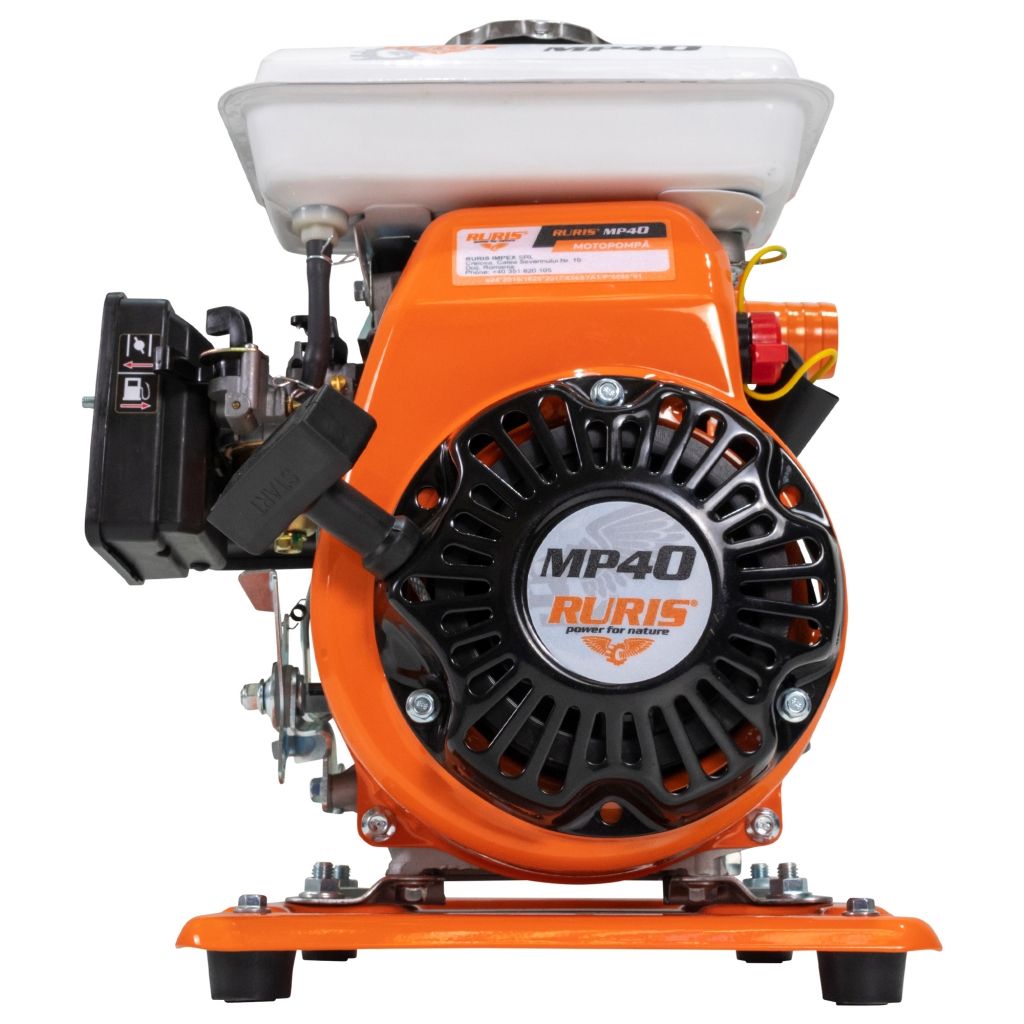 Motorna pumpa RURIS MP40 ima sljedeće tehničke karakteristike: maksimalna dubina upijanja 8m, vertikalni ispust 14m, horizontalni ispust 140m, maksimalni protok 20m³/h.