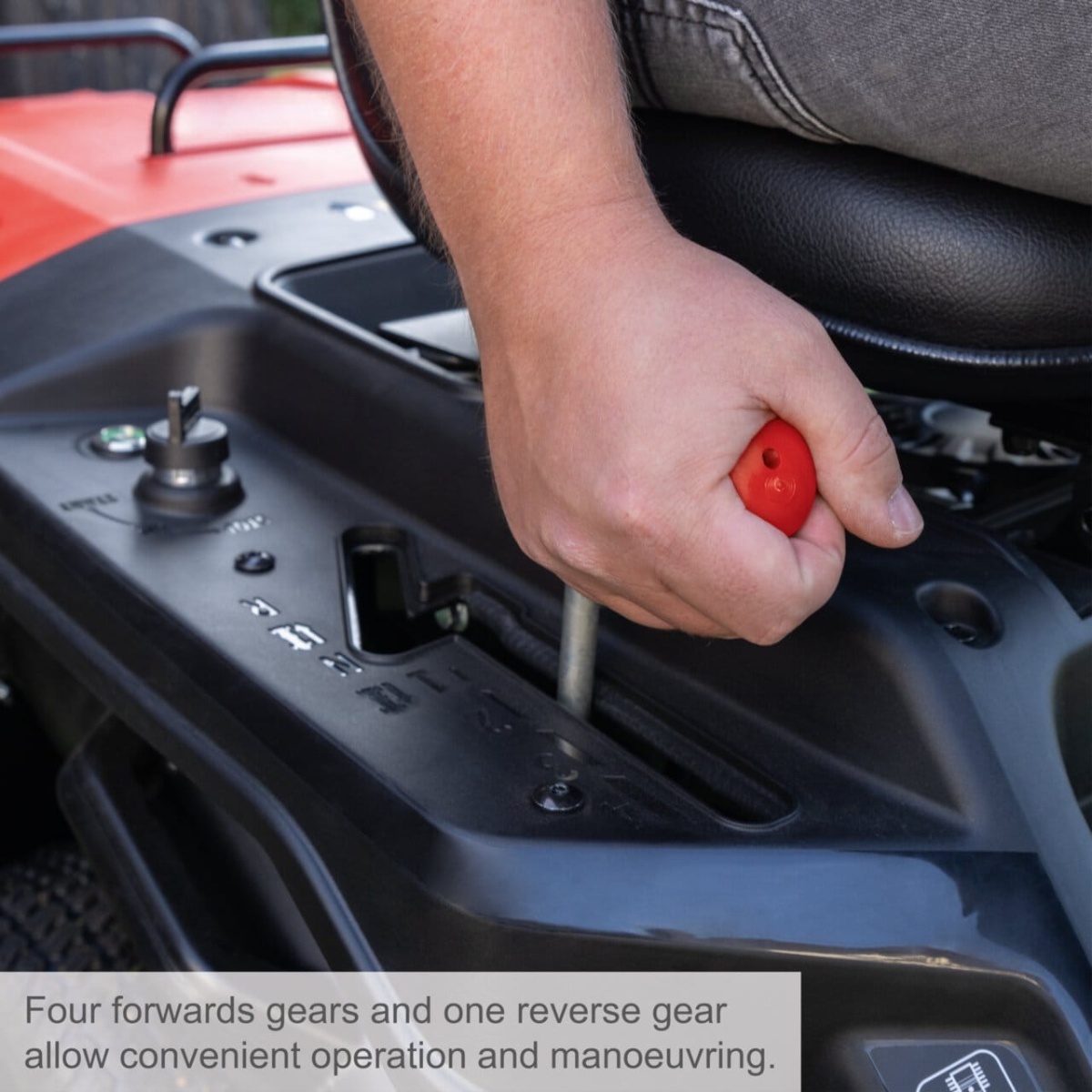 Kosilica za travu ima 4 stepena prenosa unaprijed i jednu brzinu unazad: To znači da je moguća brzina vožnje do 6 km/h. Kosilica se takođe može lako uključiti ili isključiti ručno.