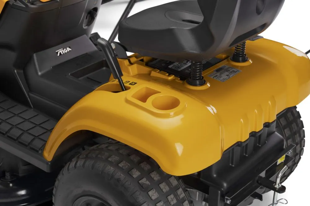 STIGA Tornado 398 sjedeća kosilica je savršeno rješenje za košenje trave s funkcijom bočnog izbacivanja ili korištenjem opcionog STIGA Multiclip sustava malčiranja. Kosilicu pokreće STIGA ST 450 benzinski motor sa neto izlaznom snagom od 7,5 kW @ 2800 o/min i ima hidrostatski prijenos na pedale. Kućište za rezanje s dvije oštrice mjeri 98 cm i može se podesiti sa sedam postavki u rasponu od 25 do 80 mm. Kuka za prikolicu i utikač za malčiranje uključeni, punjač baterija prodaje se odvojeno.