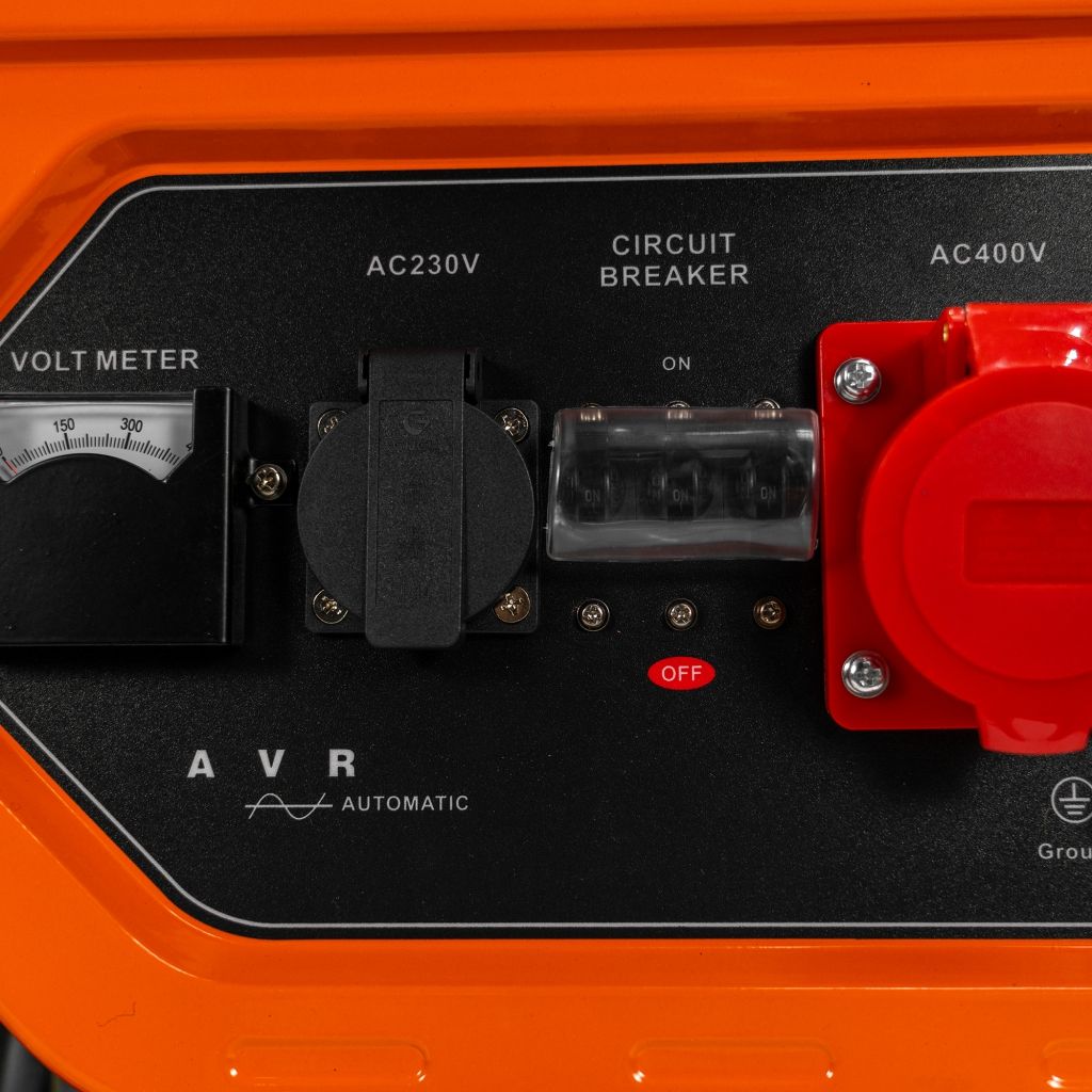 Analogni voltmetar; Brend motora: General Engine; Daljinsko upravljanje; Motor: 4 taktni, benzin; Napon 230V / 400V; Pokretanje automatski na ključ; Prosječna potrošnja goriva: 0.37L / kW / h; Zapremina motora: 420cc; |