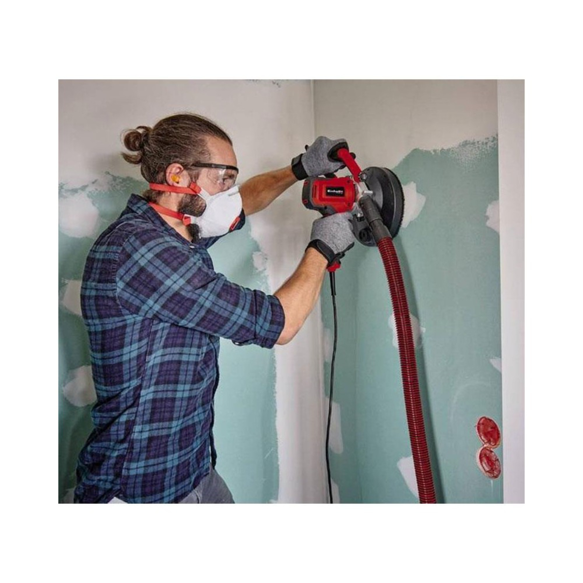 Sa Einhell TE-DW 180 brusilicom za obradu zidova, uradi sam entuzijasta je idealno opremljen za restauraciju, renoviranje i završne radove. Ergonomski dizajn omogućava udoban rad. Podesiva dodatna ručka omogućava optimalno rukovanje, tako da se radovi mogu obavljati što lakše i udobnije. Pored toga, omogućava čvrsto, sigurno prijanjanje i izuzetno lako rukovanje na svakom poslu. Šestostepena elektronska kontrola brzine prilagođava alat svakom radnom koraku, tako da omogućuje rad pri sprecifičnim zadacima. U isto vrijeme, uređaj za obradu zidova Einhell TE-DW180 je svestran i idealno je opremljen za svaku situaciju. Okrugla četka sa odvojivom ivicom omogućuje rad po rubu. Brusni disk može se mijenjati u skladu sa specifičnim zahtjevima površine na kojoj se obrađuje. Brusni disk sa otvorima za pričvršćivanje sa mikro mrežicom je dizajniran za radove na suhim zidovima. Dijamantni disk namijenjen je za ljepljenje betona, granita, estriha i pločica. Čelične četke koje se isporučuju uz proizvod namijenjene su uklanjanju ostataka tapeta, a predviđene su i za rad na betonu. Obim isporuke također uključuje šest brusnih diskova prečnika 180 mm (2xP60 /2x P80/ 2x P120), tako da se može odmah početi s radom.