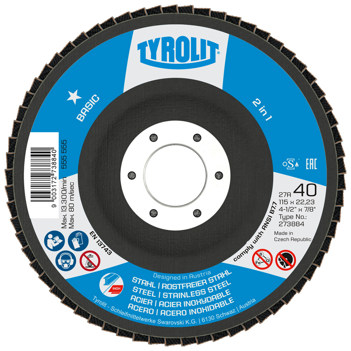 Brusna ploča za brusilice Tyrolit 34656855 115 x 22.23 ZA60 2 u 1