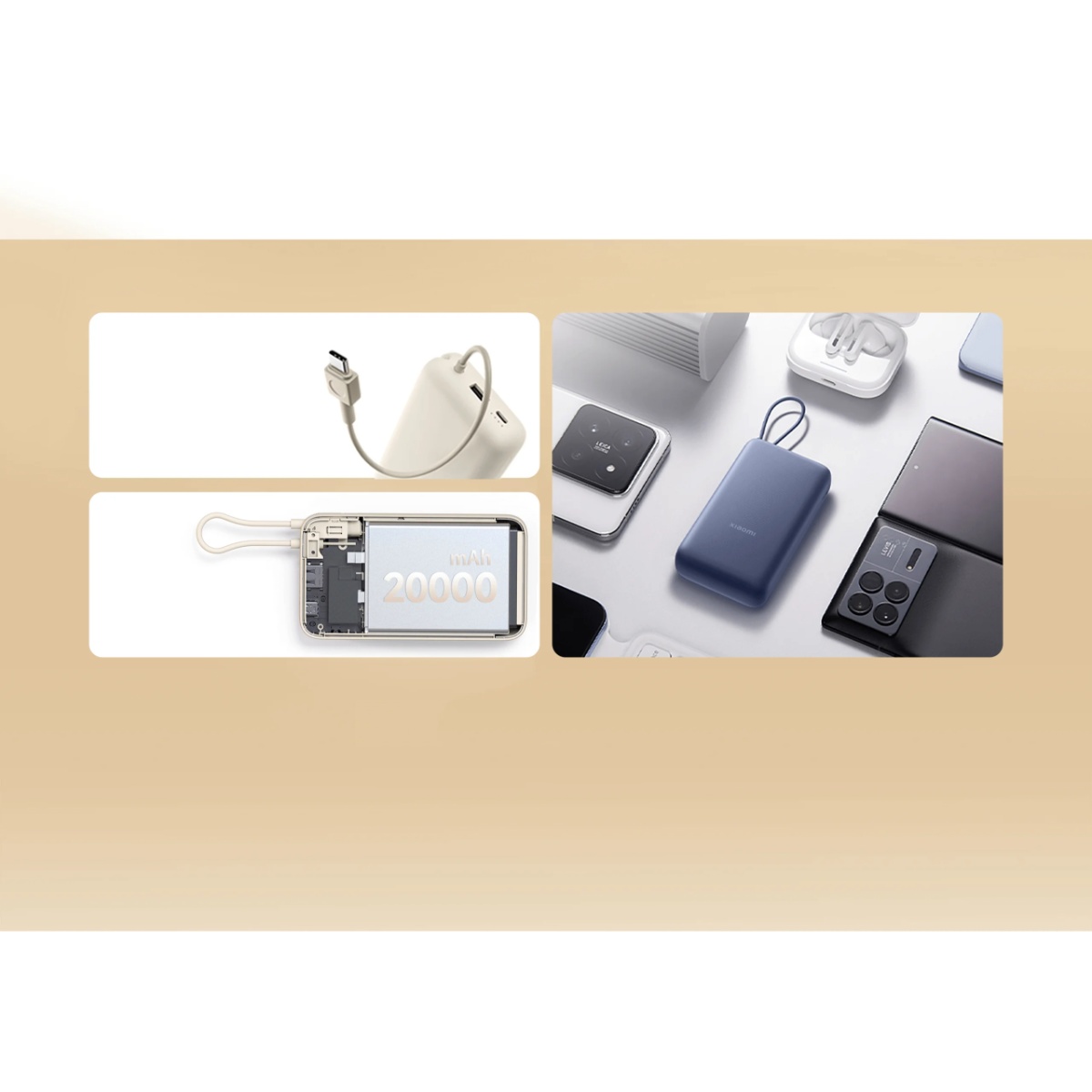 USB-C priključak za napajanje sa integrisanim kablom, zajedno sa USB-C i USB-A priključcima, može puniti tri uređaja istovremeno, zadovoljavajući potrebe za napajanjem više uređaja tokom putovanja.