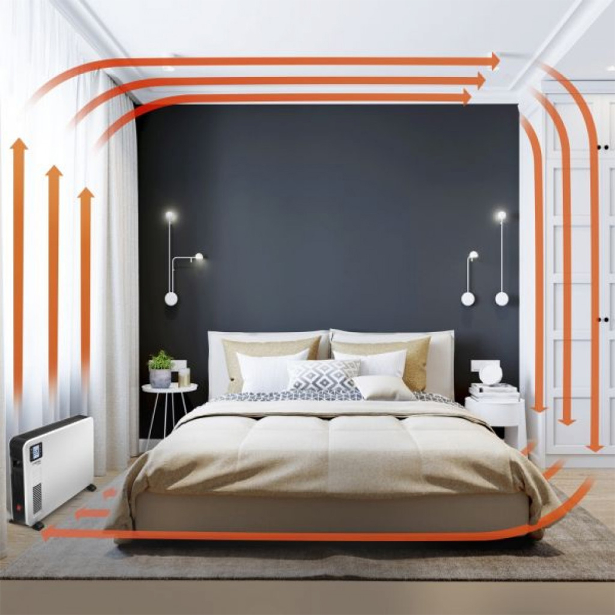 Kad je sobna temperatura niska, želite se zagrijati što je brže moguće. Zbog toga tanki konvektori imaju ventilator s mogućnošću uključivanja za ubrzanu cirkulaciju zraka i distribuciju toplog zraka. Zagrijani zrak diže se kroz otvor za zrak, stvarajući prirodno usisavanje koje uvlači hladniji sobni zrak u uređaj. Rezultat je ugodna toplina koja ispunjava prostoriju-koja je 100% čista, bez kondenzacije i mirisa zahvaljujući električnom grijaćem elementu.