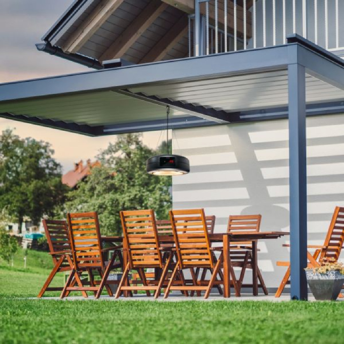 Sa stropnim reflektorom IR 1550 SC možete se osloniti na ugodne temperature 365 dana u godini – čak i za hladnih dana u nestabilno proljeće i s ledenim vanjskim temperaturama u jesen ili zimi. Bilo kao rješenje za grijanje ili rasvjetu za balkon ili terasu kod kuće, za korištenje vremena na otvorenom na ugodnoj temperaturi tijekom cijele godine. Dizajnerski stropni reflektor IR 1550 SC od 1500 W impresionira svojim jedinstvenim dizajnom i istovremeno pruža relativno jeftinu toplinu od 360° i ugodnu svjetlost. Infracrvena toplina se razvija odmah nakon što ste uključili uređaj pomoću prekidača za uključivanje/isključivanje sa svjetlosnim indikatorom rada. Ugodan ambijent s brzim zagrijavanjem i LED svjetlom u vanjskim prostorima. IR 1550 SC to omogućuje!