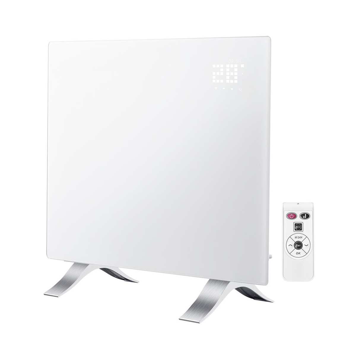 Proizvod se odlikuje modernim i elegantnim dizajnom. Izrađen je od kaljenog stakla visoke čvrstoće. Aluminijski sistem grijanja nove generacije radi bez buke, mirisa, plina ili dima. Toplota se osjeća odmah kada se konvektor uključi. LED ekran osjetljiv na dodir je jednostavan i intuitivan za korištenje. Uređaj je opremljen preciznim termostatom s kontrolom temperature u rasponu od 5-45°C. Daljinski upravljač olakšava programiranje načina rada. Sedmični program u uređaju može se kontrolirati i daljinskim upravljačem i dodirnom pločom. Grijač ima zaštitu od pregrijavanja, zaštitu od prevrtanja i zaštitu od djece, što utiče na sigurnu upotrebu. Proizvod ima funkciju protiv smrzavanja za održavanje minimalne temperature u prostoriji i funkciju za detekciju otvorenih prozora. Grijač se može postaviti na pod ili montirati na zid – uključene su aluminijske noge i set za montažu na zid. Ovaj proizvod je pogodan samo za povremenu upotrebu ili za upotrebu u dobro izoliranim prostorijama.