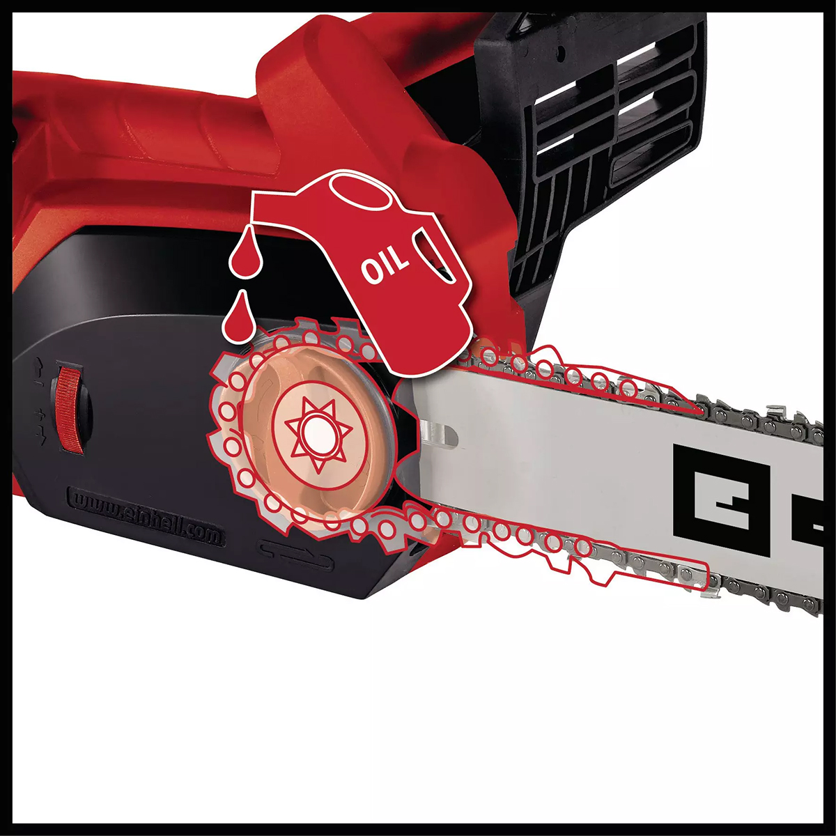 Električna motorna pila GH-EC 1835 je praktičan i efikasan alat te pouzdan pomoćnik pri rezanju ogrjevnog drveta, prorjeđivanju šiblja i sječi manjih stabala. Robusna vodilica i lanac osiguravaju optimalne performanse rezanja. Lanac se može zatezati i mijenjati bez upotrebe alata. Za dobar prijenos snage i dug vijek trajanja zadužen je visokokvalitetni, robusni metalni prijenosnik. Zaštita od povratnog udara s trenutnom mehaničkom kočnicom lanca odmah zaustavlja lanac ako se GH-EC 1835 iznenada podigne ili trzne. Veliki kontrolni prozor omogućava jednostavnu provjeru količine ulja u rezervoaru automatskog sistema za podmazivanje lanca. Veliki otvor za dolijevanje s brzim zatvaračem omogućava lako dopunjavanje ulja. Radi sigurnosti u slučaju da lanac iskoči s vodilice, ugrađen je sigurnosni hvatač lanca. Robusni metalni zupčasti oslonac osigurava sigurno rukovanje i ujedno služi kao oslonac pri rezanju horizontalno položenih trupaca. Kopča za rasterećenje zatezanja štiti napojni kabel.