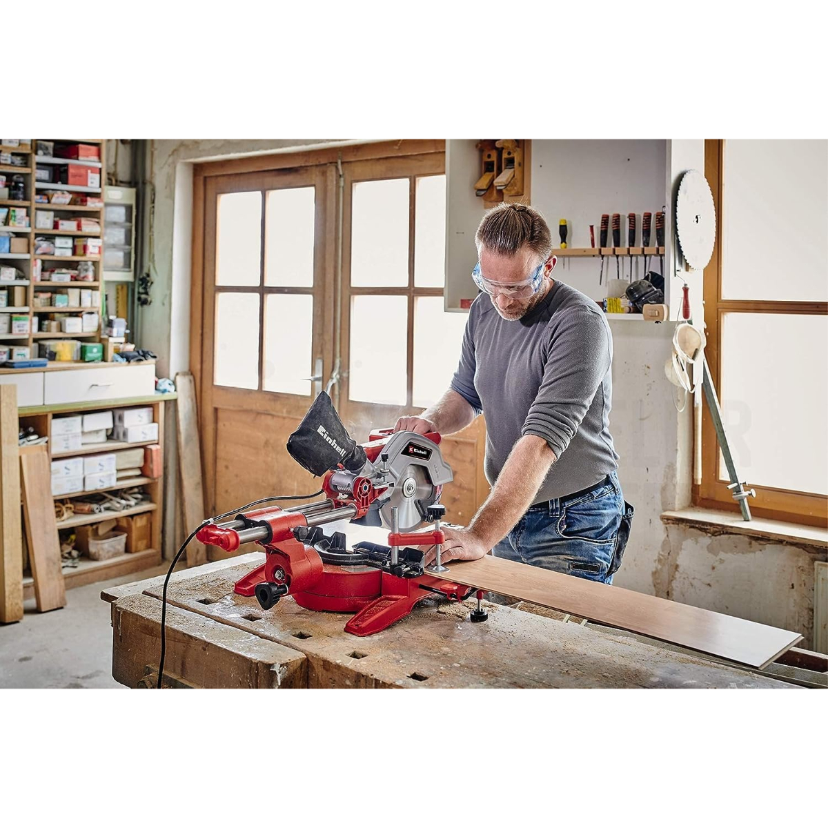 Sa Einhell TC-SM 216 testerom za poprečno i sječenje pod uglom, ambiciozni DIY entuzijasta idealno je opremljen za poslove rezanja i poprečnog sječenja u kući, radionici ili garaži. Sa snagom od 1600 W, list pile (Ø 216 vanjski x ø 30 unutrašnji) ima dovoljno snage za rezanje različitih materijala. Ova čvrsta testera ima funkciju glatkog izvlačenja za široke komade. Nosač ima mogućnost preciznog podešavanja ugla kako bi se olakšalo postizanje dobrih kutnih rezova. Za najčešće uglove kod „uradi sam“ poslova, na okretnoj ploči su osigurane pozicije za zaključavanje za brzo i pouzdano podešavanje ugla. Postoje lako čitljive skale za uglove i širine. Također, glava pile se može nagnuti ulijevo za kosi rez. Širina sječenja je do 305 milimetara sa postavkom od 90° i do 210 milimetara sa uglom od 45°. Integrisani laser za ozačavanje je ogromna pomoć pri radu. Na lijevoj i desnoj strani su predviđeni nosači za duže komade, a tu je i praktičan stezni uređaj za pričvršćivanje kaomada. List pile od tvrdog metala visokog kvaliteta pruža savršene rezove. Za lakšu promjenu lista pile postoji blokada vretena. Za efikasnije uklanjanje strugotine iza lista testere se nalazi lijevak za prašinu. Priloženi priključak za izvlačenje parašine usisivačem ima prečnik od 36 milimetara, ili se kao alternativa može koristiti isporučena vreća za prašinu. Za efikasnije uklanjanje strugotine iza lista testere se nalazi lijevak za prašinu.