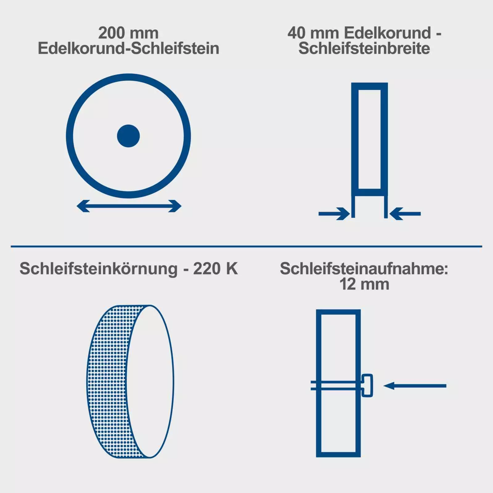 Specijalni korundni brusni kamen sa aluminijum oksidom ima prečnik od 200 mm i debljinu od 40 mm. Dio je standardne opreme TIGER 5000S. Zrnatost K 220 daje savršene rezultate brušenja čak i kod tvrdog čelika preko 60 HRC (alatnog čelika).