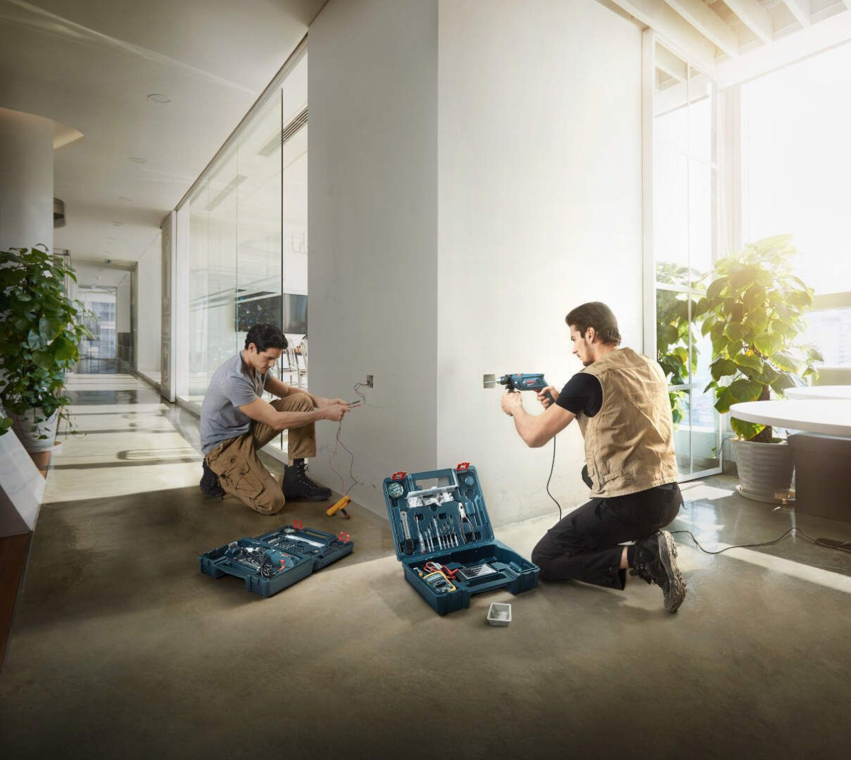 Snažan i pouzdan električni alat. Snažan 550 W motor. Zupčasta stezna glava 13 mm, dodatna ručka i graničnik dubine. Konstrukcija s potpunim kugličnim ležajevima za dug životni vijek. Jednostavno prebacivanje između udarnog bušenja i običnog bušenja. Desni i lijevi smjer okretanja za uvrtanje i odvrtanje vijaka.