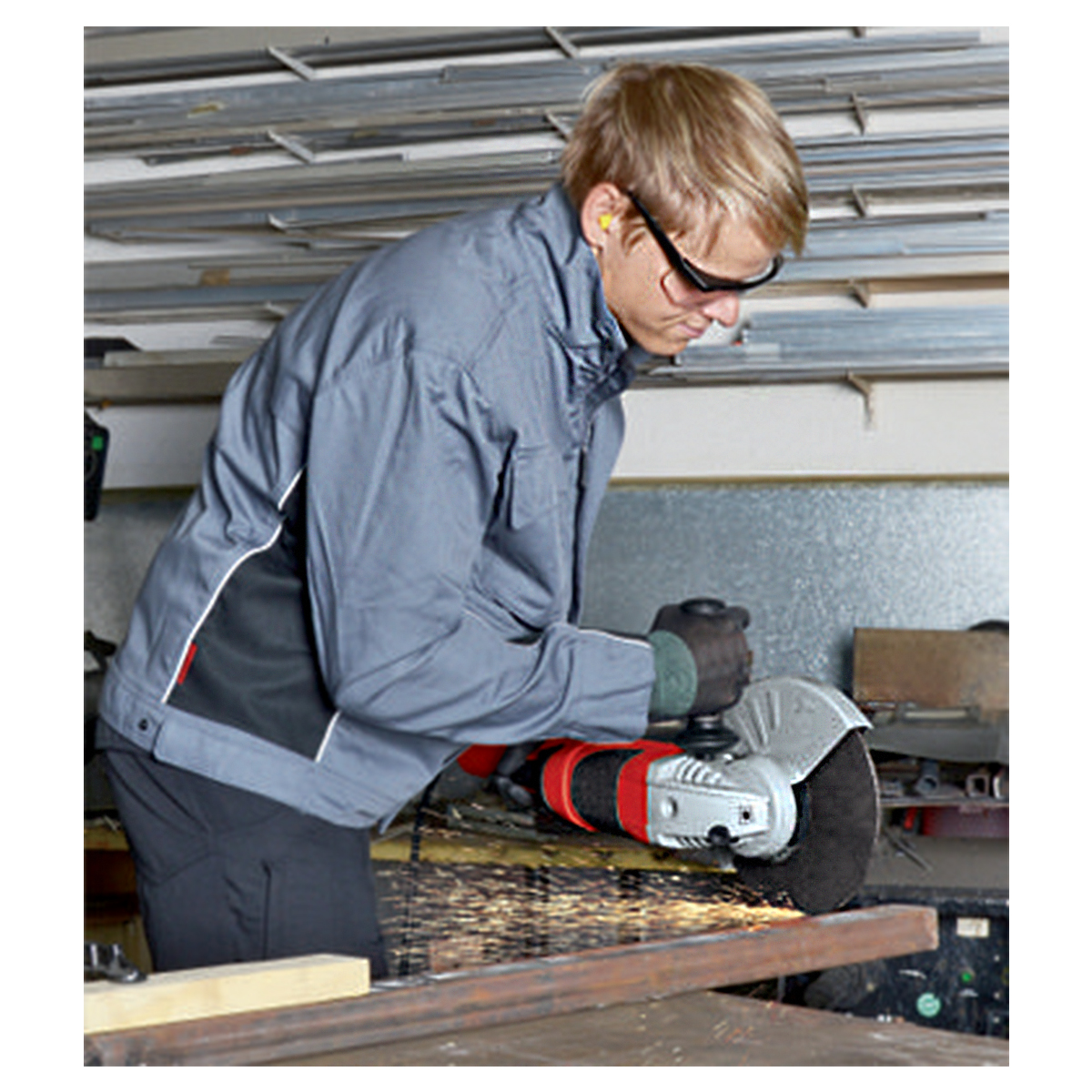 Kvalitetna kutna brusilica, tiha u radu i sa malo vibracija, što joj daje sigurnost u radu. Ergonomski oblikovana mekana drška i dodatna drška i tanki dizajn omogućuju dobro držanje u ruci i dodatan komfor. Dodatna drška se može lagano ustabiliti u tri različite pozicije. Dodatna sigurnost je osigurana zbog funkcije laganog pokretanja. Zaštita reznih ploča se može brzo i bez alata prilagođavati. Kutna brusilica se praktično pohranjuje nakon rada s njom zbog prihvata kabla. Dodatna prednost kod rukovanja ovom brusilicom pruža glavna drška koja se može zakretati i ima ugrađenu antivibracijsku zaštitu za ugodan rad.