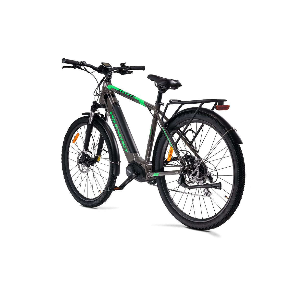 MS ENERGY eBike t100 je bicikl za treking koji je opremljen SHIMANO ACERA mjenjačem i prednjim ovjesom za hod od 60 mm. Zanimljive geometrije i vanjske gume CST učinit će vašu vožnju bezbrižnom. Bicikl dolazi s laganim aluminijskim okvirom i vrhunskim TEKTRO hidrouličnim kočnicama. Udobnost i dizajn svakako doprinose tome da ovaj bicikl bude u centru pažnje. Sa snažnim Ananda M81 motorom i baterijom od 540Wh, možete uživati ​​u vožnji, dostižući domet do 130 km (u zavisnosti od konfiguracije terena, vremenskih uslova, težine vozača i stepena pomoći). Bicikl dolazi sa opremom koja uključuje prednje i zadnje blatobrane i svjetla.