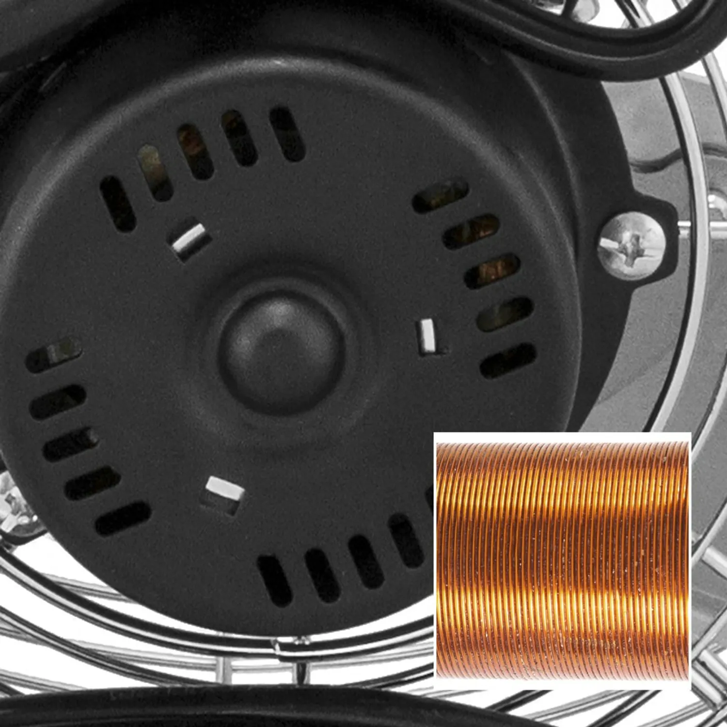 Ovaj elegantni ventilator klasičnog retro dizajna distribuira ugodno topao zrak i osigurava konstantno rashladnu struju zraka. Podni ventilator TVM 12 je izrađen od metala, od kromiranih krilaca do hromiranog postolja – čak je i motor opremljen bakrenim namotajem. Ovo ne samo da izgleda plemenito, već i produžava vijek trajanja cijelog uređaja.