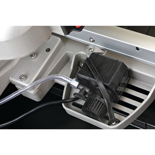 - Stražnji i bočni dodaci za vodu mogu se postaviti na pilu za pločice kako bi uhvatili prekomjerno prskanje – zadržavajući vodu u posudi