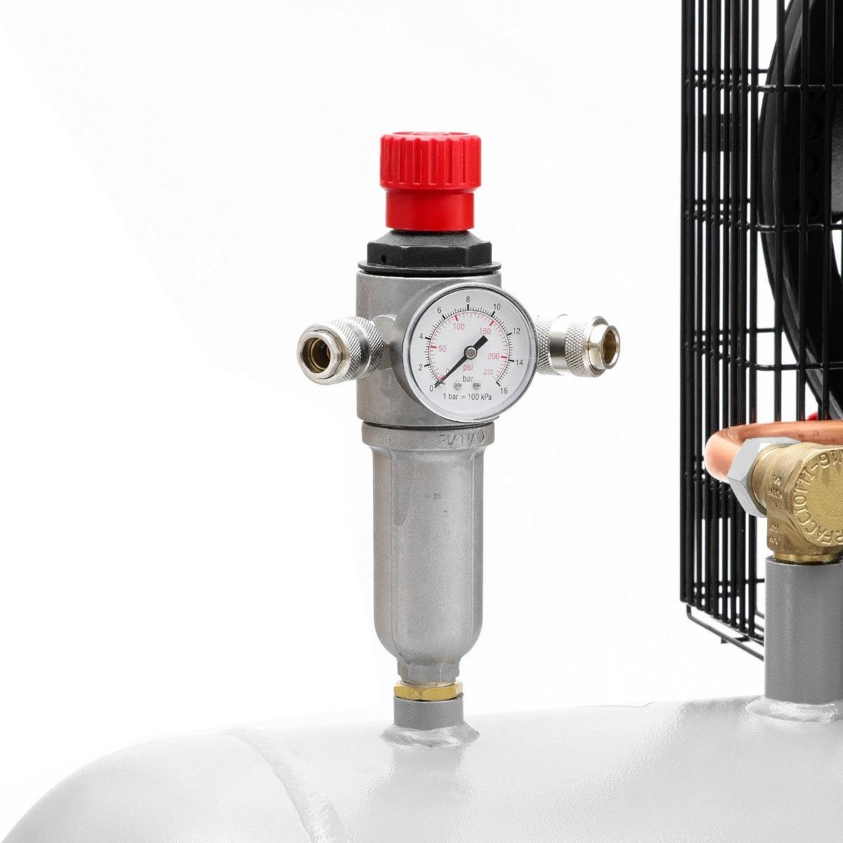 | Ostale informacije | Bezuljni: NE Broj klipova: 2 Broj obrtaja: 1400o/min Konektor vazduha: 2 Univerzalna + 1 Euro Minimalni pritisak: 8bar Tihi: Ne Točkovi: Da |