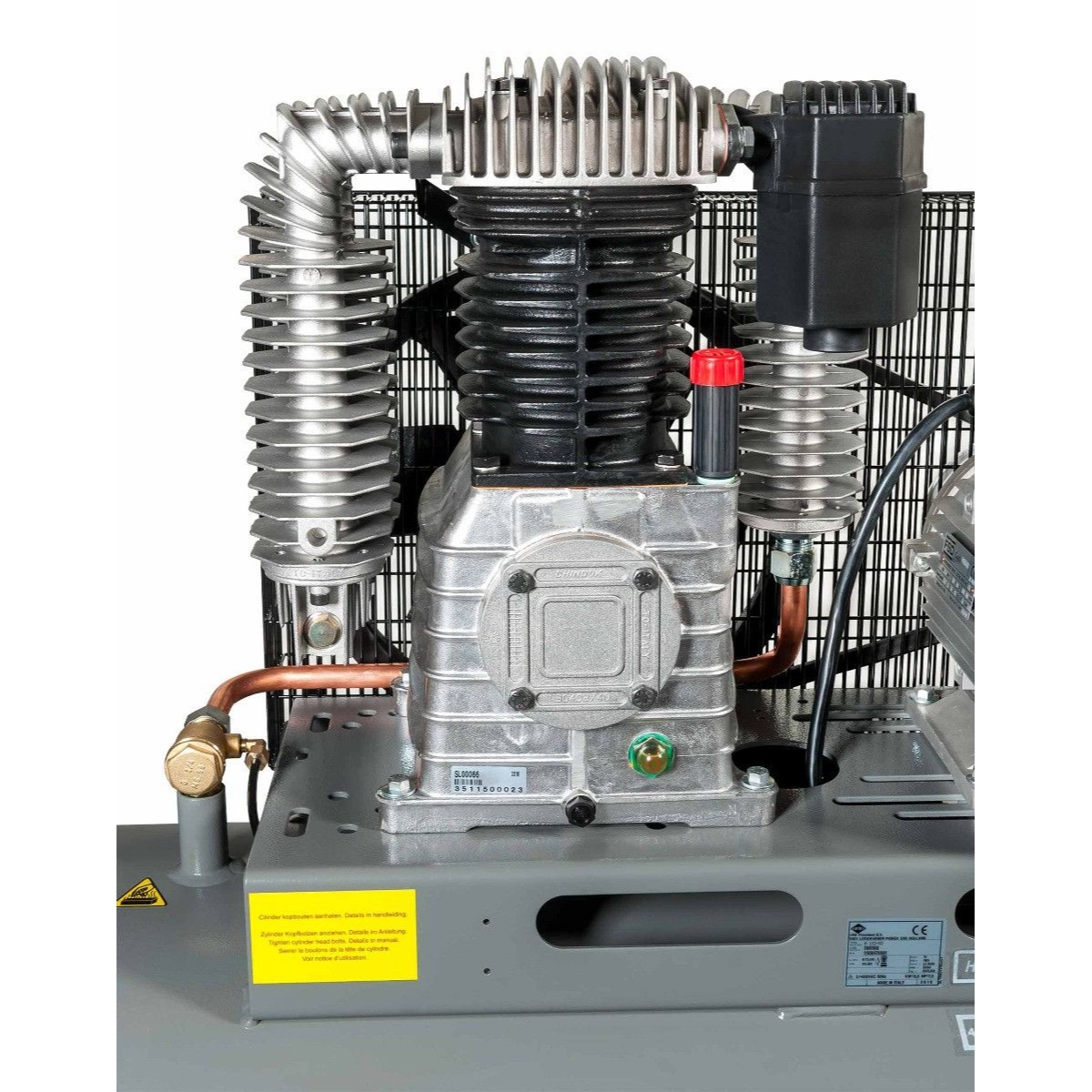 HK 1000-500 Pro je efikasan dvoklipni kompresor namijenjen profesionalnim radionicama, servisima i industrijskim postrojenjima sa velikom potrošnjom komprimovanog vazduha. Opremljen snažnim motorom od 7.5 HP (5.5 kW), trofaznim napajanjem 400V i velikim rezervoarom od 500 litara, obezbjeđuje pouzdan rad i visoku efikasnost čak i pri intenzivnoj upotrebi. Zahvaljujući pumpi K30, ovaj model nudi izuzetne performanse i dug vijek trajanja.