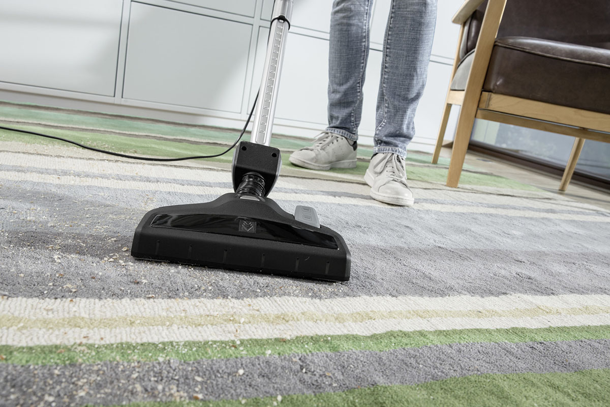 Odlični Kärcherov usisavač VC 5 dokazuje da jak usisivač ne mora biti velik. Ovaj kompaktni usisivač, uprkos svojoj maloj veličini, osvaja jedinstvenom performansom čišćenja te ide rame uz rame s klasičnim usisivačima. Zahvaljujući patentiranom trostrukom teleskopskom sistemu, uređaj je moguće napola smanjiti. Jednostavno pritisnuti dugme i sklopiti, usisivač već postaje jedan od najkompaktnijih na svijetu te se može pospremiti čak i u najmanjem domu. Svoje jake performanse VC 5 ima zbog preklopive Kärcher mlaznice za suvo usisavanje sa fleksibilnim zglobom. Mlaznica je razvijena specijalno za ovaj uređaj, ima neznatnu potrošnju električne energije, a zbog svoje posebno kompaktne konstrukcije i specijalne geometrije usisnog dijela ima maksimalnu snagu. I oznaka ErP potvrđuje da VC 5 ima najbolje rezultate čišćenja na svim tvrdim podovima i tepisima. Još jedna prednost je filterski sistem bez vrećice s integrisanim čišćenjem filtera, čime štedite na skupim zamjenskim filter vrećicama. Filterska kaseta jednostavno se vadi i osigurava brzo pražnjenje filtera. VC 5 je pravi snažni patuljak s vrlo snažnim performansama.