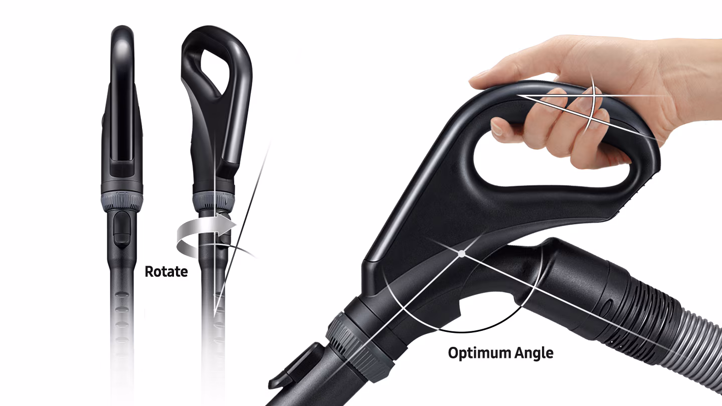 Ergonomska, neklizajuća ručka Easy Grip omogućava čvršće i udobnije držanje. Možete lako kontrolisati kretanje usisivača, bez umaranja ruku ili ispuštanja usisivača. Uz to se i okreće, pa se crijevo neće zapetljati.