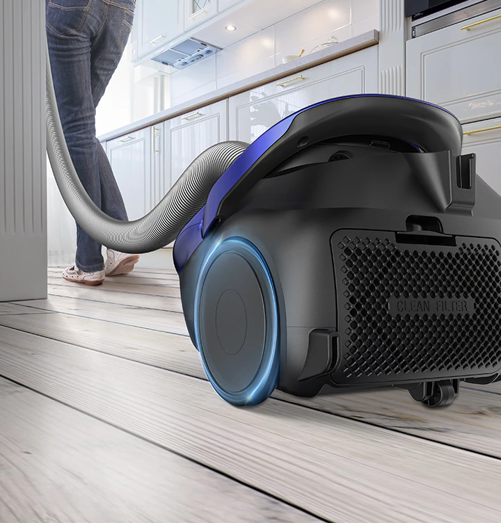 Da li želite snagu industrijskog usisivača, ali bez muke oko njegovog pomijeranja? Lagan dizajn usisivača Samsung VC2500 sa kesom u kanisteru omogućava lako manevrisanje. Takođe, njegovo moćno usisavanje obezbjeđuje dubinsko i intenzivno čišćenje tepiha, staza i tvrdih podova.