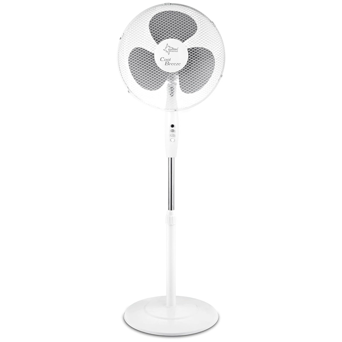 Ventilator sa postoljem, kombinira funkcionalnost, dizajn i performanse u jednom uređaju. Stabilno postolje, veliki promjer ventilatora, lopatice od 40 cm. Ventilator ima 3 brzine rada, oscilacija 90° podesiva glavu +/- 45°, podesiv je po visini do 130 cm. Gusta zaštitna mrežica. Napajanje 220 V / 50Hz / 40 W, boja bijelo / plava