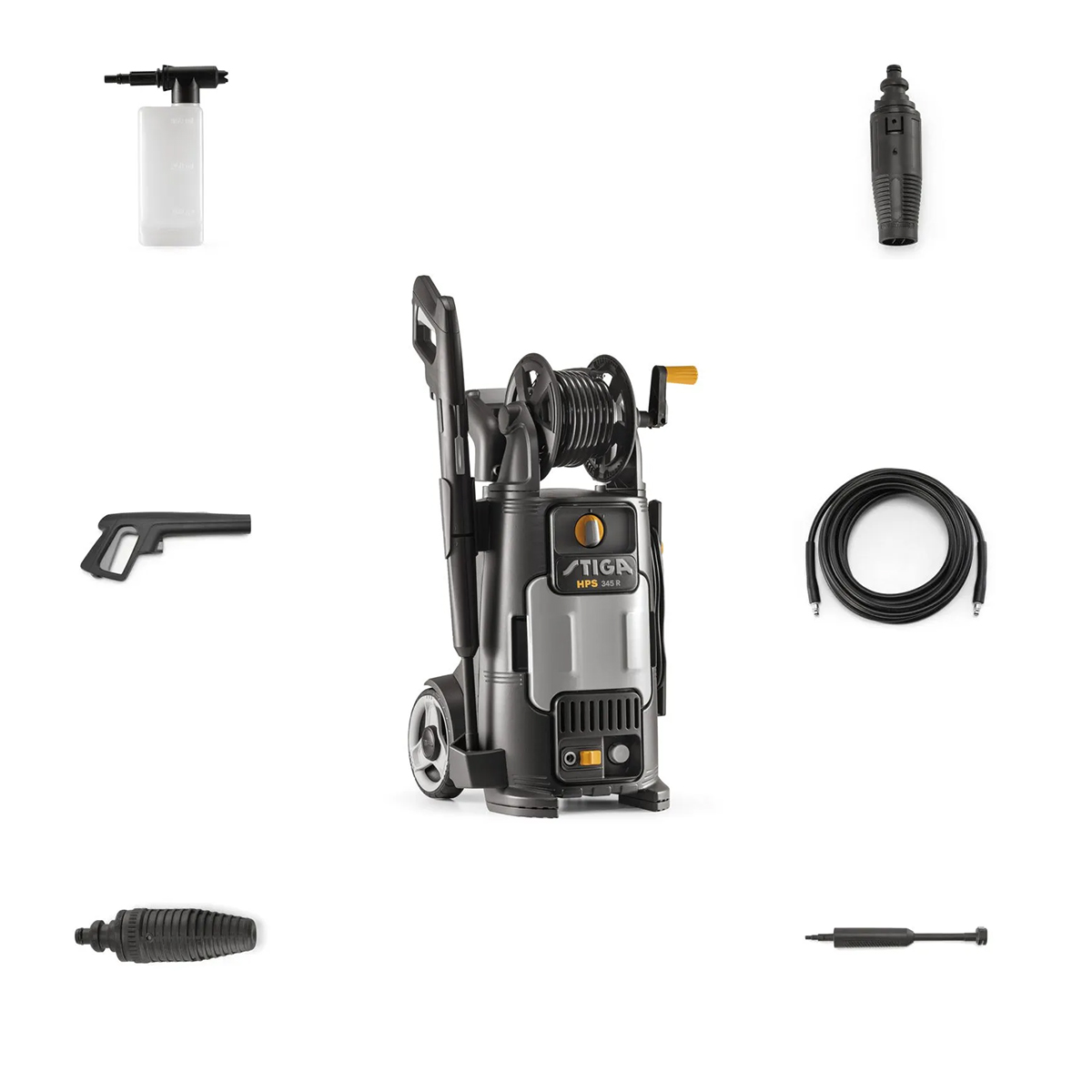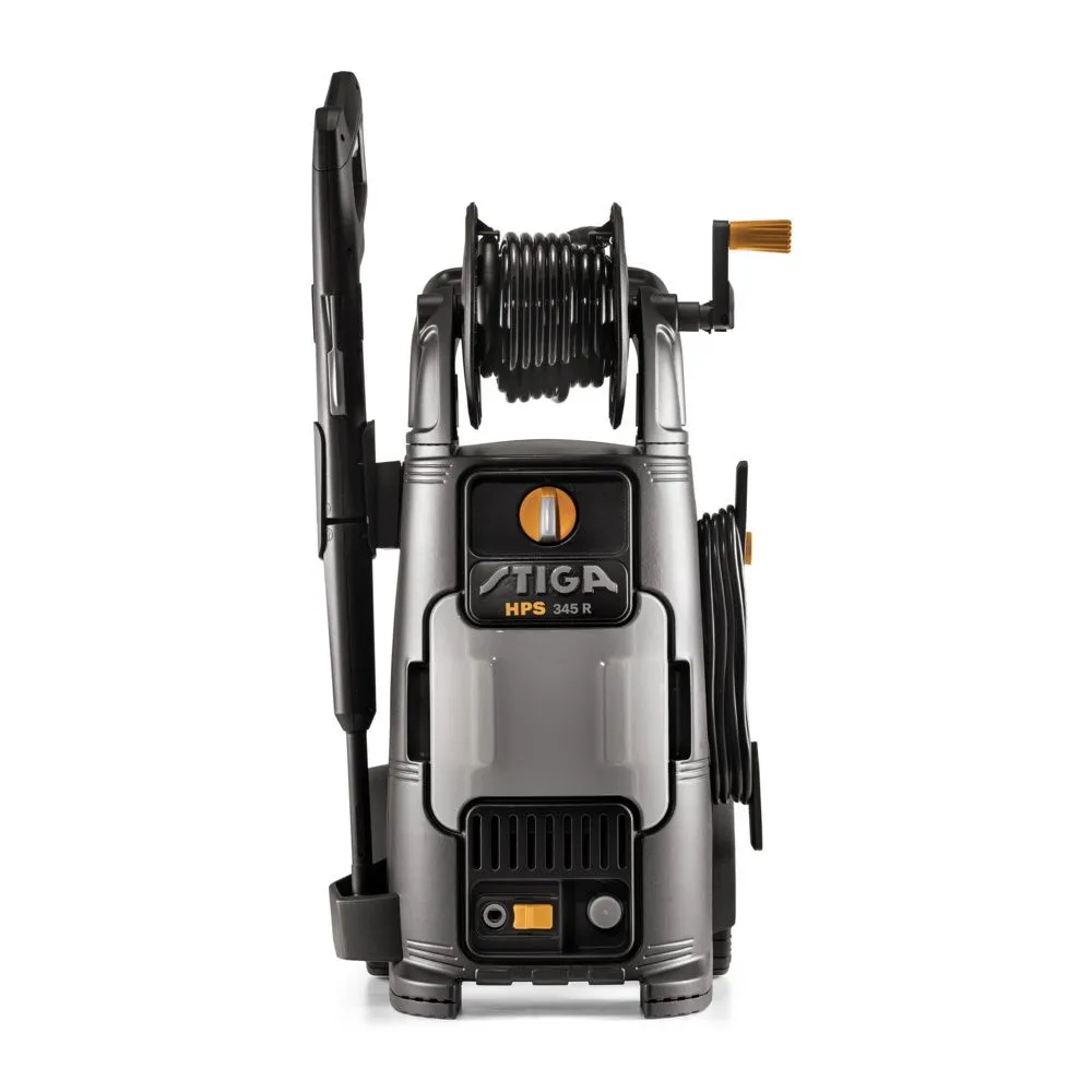 STIGA HPS 345 R je visokotlačni perač s hladnom vodom dizajniran za udobno i jednostavno čišćenje površina srednje veličine. Ovaj visokotlačni perač pokreće indukcijski elektromotor od 2100 W koji radi sa maksimalnim pritiskom od 145 bara i protokom od 450 l/h. Isporučeno crijevo visokog pritiska je dugačko 9 metara. Lagan je, vrlo stabilan i lak za pomicanje s dva gumena kotača i teleskopskom ručkom s neklizajućom ručkom s mekim držanjem. HPS 345 R ima kolut za crijevo i praktičan pretinac za odlaganje dijelova i pribora. HPS 345 R je idealan za umjereno zahtjevne zadatke čišćenja na nizu predmeta i površina, uključujući vrtlarske uređaje, terase i stepenice, bicikle, motocikle, automobile, pločnike, staze, drvene predmete i kutije za alat.