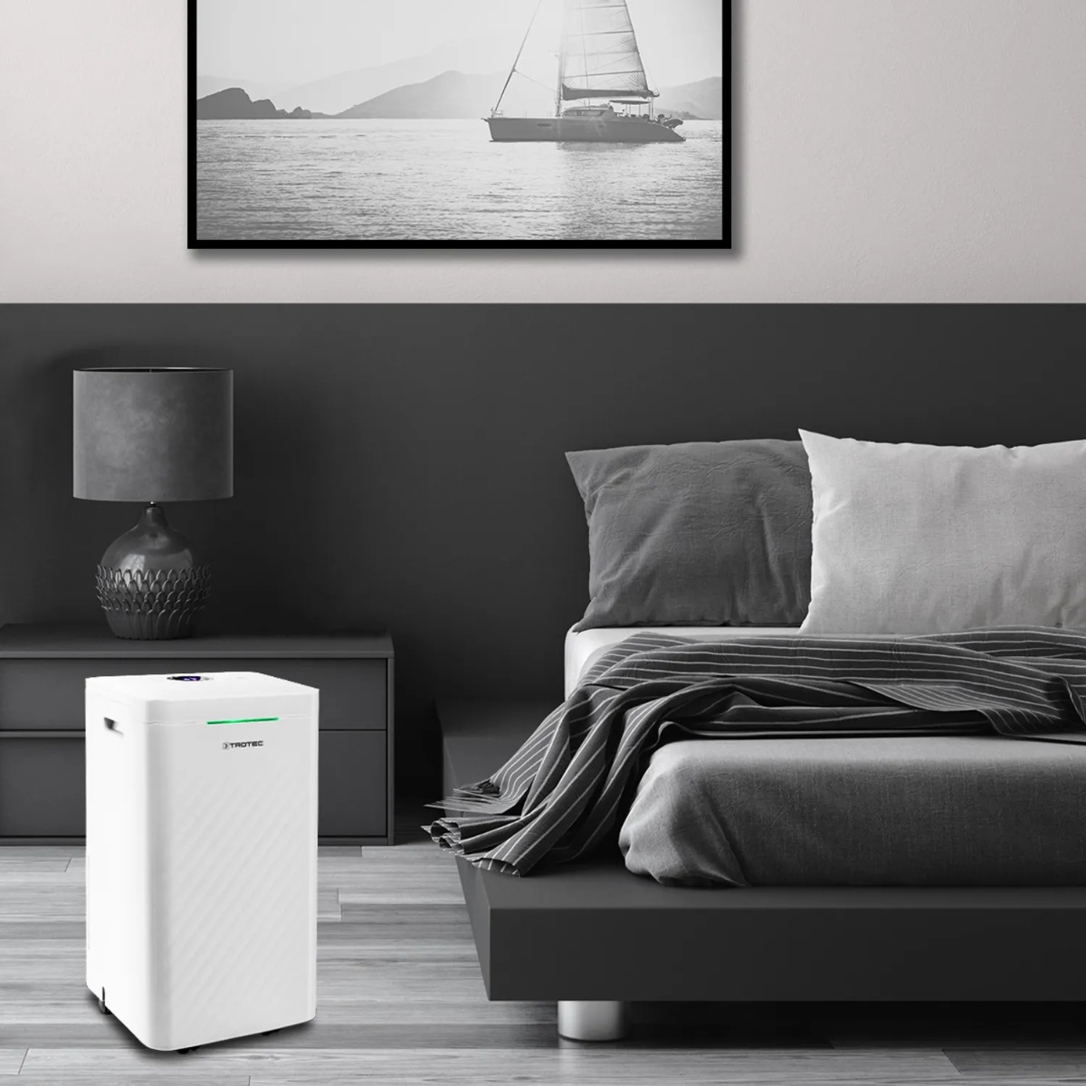 Uživajte u zraku u svojoj sobi. Multifunkcionalni dizajnerski odvlaživači zraka TTK 27 HEPA i TTK 64 HEPA omogućavaju ovo i više na izvanredan način. Opremljeni s dvije tehnologije za trajno poboljšanje kvalitete zraka, kombinirani uređaji uklanjaju štetnu vlagu u stambenim i poslovnim prostorima, uredima, trgovinama, negrijanim zimskim vrtovima, podrumima i garažama. Osim toga, zrak u prostoriji se pročišćava u ugrađenom HEPA filteru i oslobađa od 95 posto štetnih bakterija i virusa, spora plijesni, polena, kućne prašine, finih čestica, alergena i drugih štetnih tvari. Trajna zaštita zdravlja za sve u prostoriji – posebno olakšanje za alergičare i osobe alergične na kućnu prašinu. Moderni odvlaživači zraka dostupni su u jednostavnom kubičnom dizajnu sa zakošenim rubovima i strukturiranom površinom u dvije verzije i veličine uređaja.