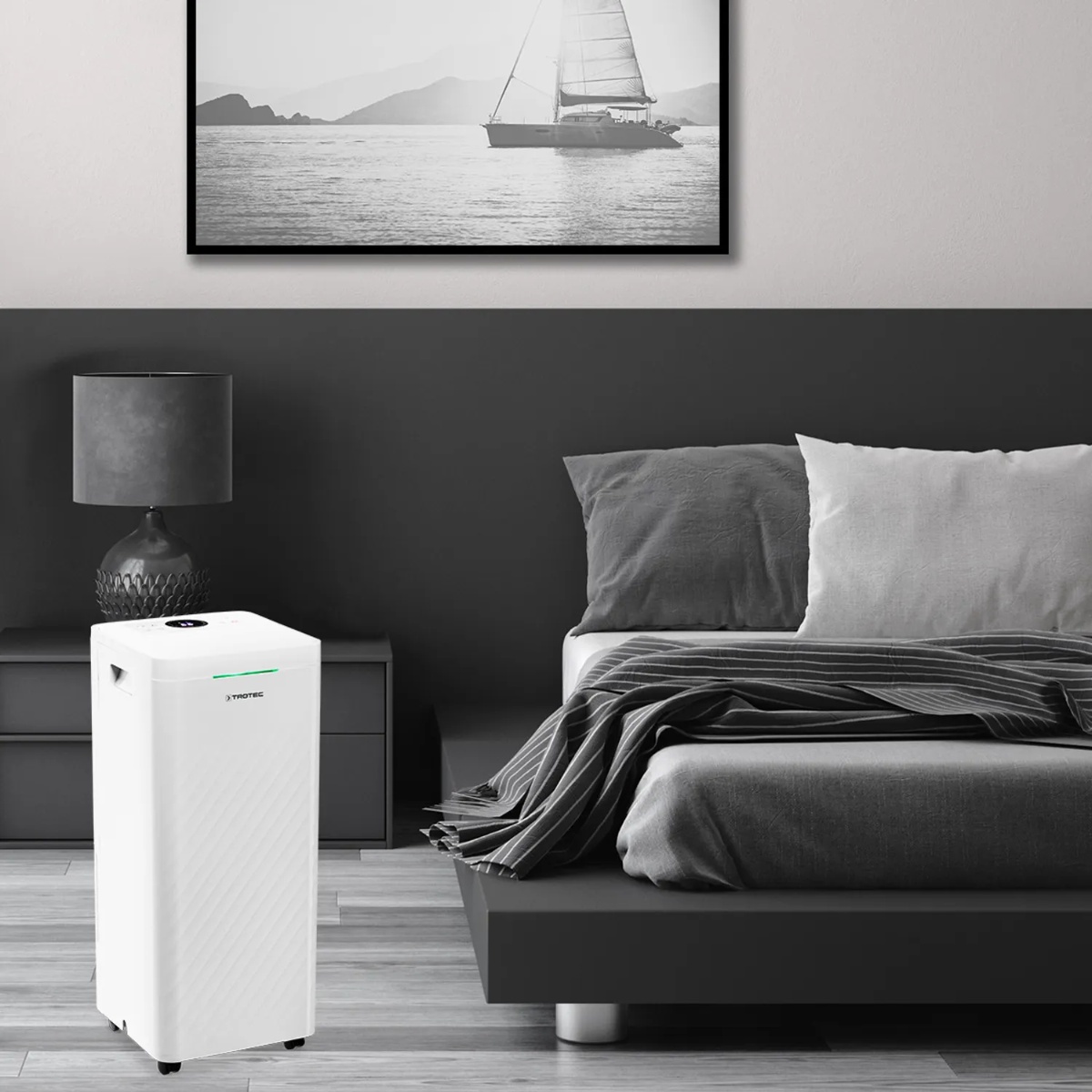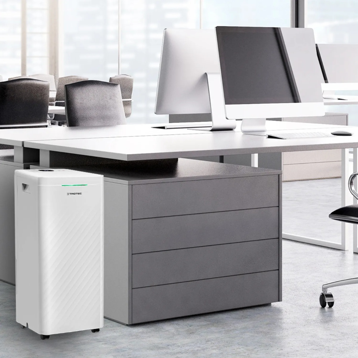 Dizajnerski odvlaživač zraka TTK 64 HEPA, koji je uvjerljiv i vizualno i tehnički, regulira vlažnost zraka na zdravu razinu i zahvaljujući HEPA filtraciji štiti od virusa, bakterija, spora plijesni i drugih onečišćenja u zraku.