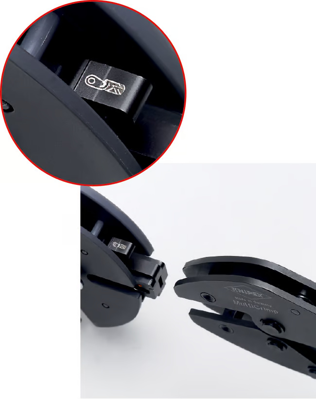 - Konstantno visok kvalitet krimpovanja zahvaljujući preciznim umetcima i mehanizmu sa zapornim mehanizmom (može se otključati)