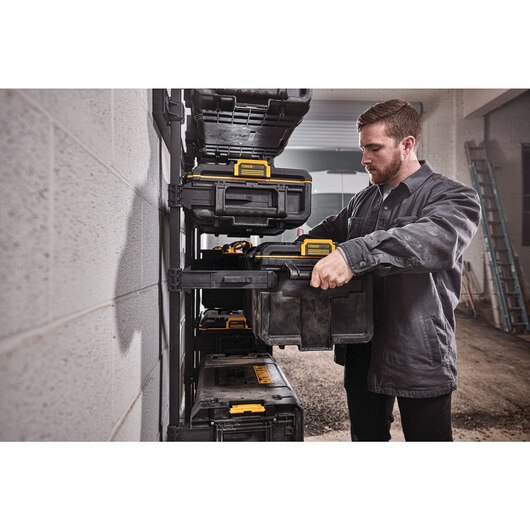 - NOVI DEWALT TRACKER SPREMAN – Unutrašnja tačka fiksiranja omogućava instaliranje DEWALT Trackera i praćenje kutije preko DEWALT Tool Connect-a