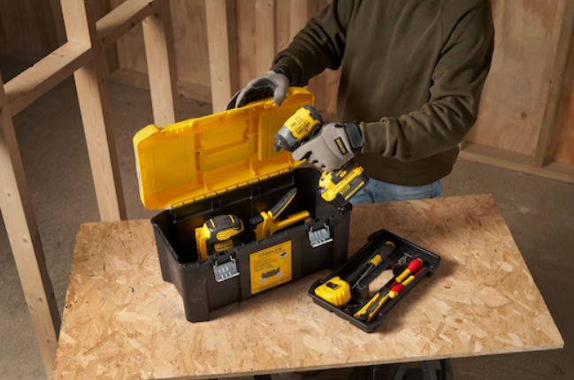 STANLEY® kutija za alate od 19 inča idealna je za odlaganje vaših ručnih alata i malih električnih alata, a sadrži dva odvojiva organizatora za brz i lak pristup fiksiranju i priboru. Ima uklonjivu ladicu za odlaganje sitnih dijelova, kao i gornji dio udubljenja za držanje malih dijelova. Sadrži metalne brave otporne na hrđu za izdržljivost i katanac za sigurnost.