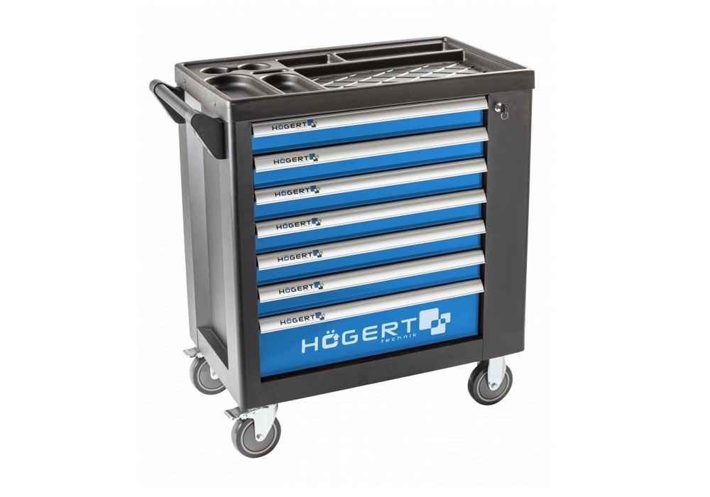 Praktična i prostrana radionička kolica za alat sa 7 ladica i bočnim prostorom za odlaganje. Čvrsta konstrukcija osigurava dugotrajnu upotrebu u radioničkim uslovima, dok 4 točka, uključujući 2 okretna, omogućavaju lako pomjeranje, zahvaljujući čemu će kolica uvijek biti na pravom mjestu. Idealan za automehaničarske radionice, ali i za garaže svih ljubitelja „uradi sam“ projekata.