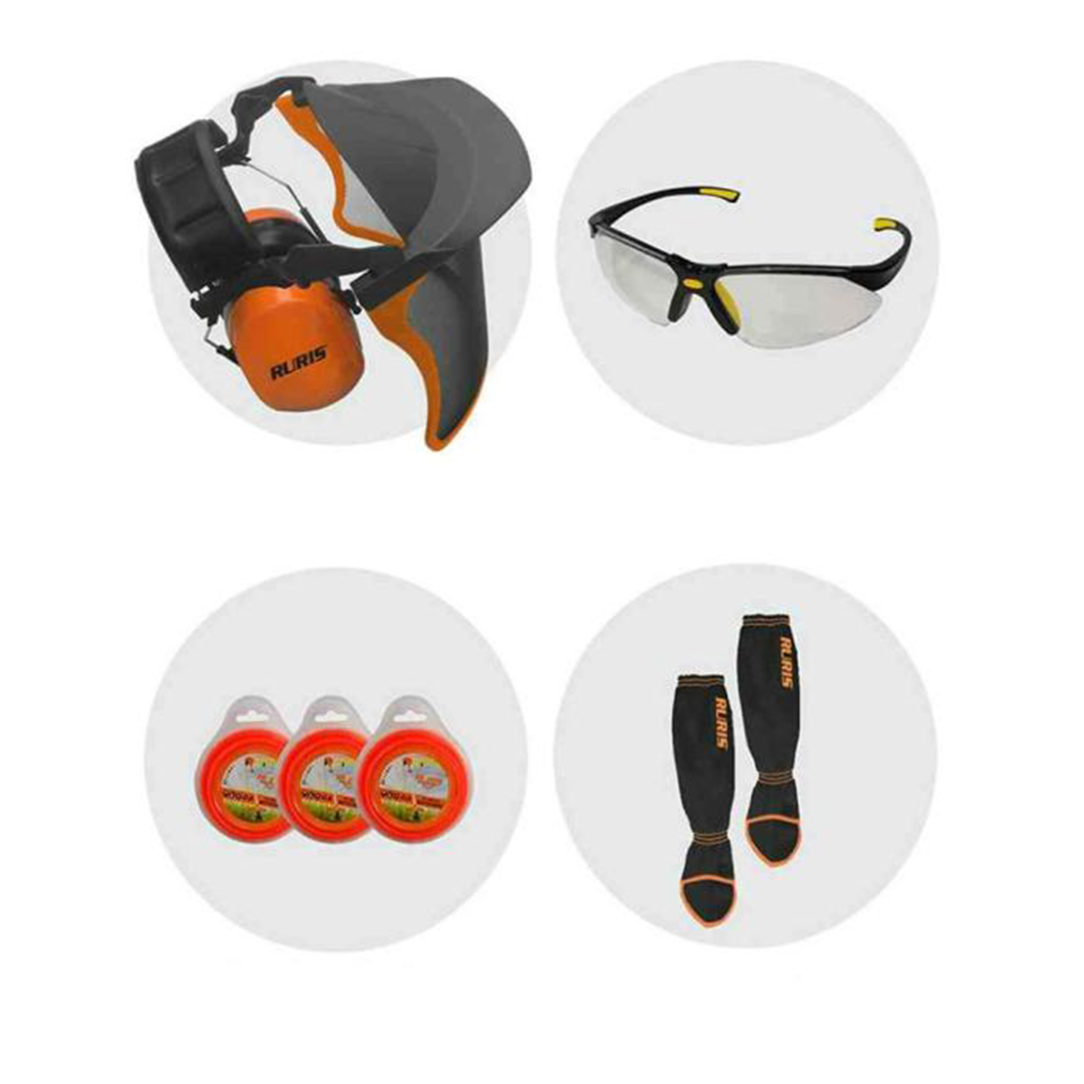 3 komada silka 3mm, 15m; Multifunkcionalna kaciga: Štitnik lica – vizir za trimer + slušalice; Štitnici za noge; zaštitne naočale; |