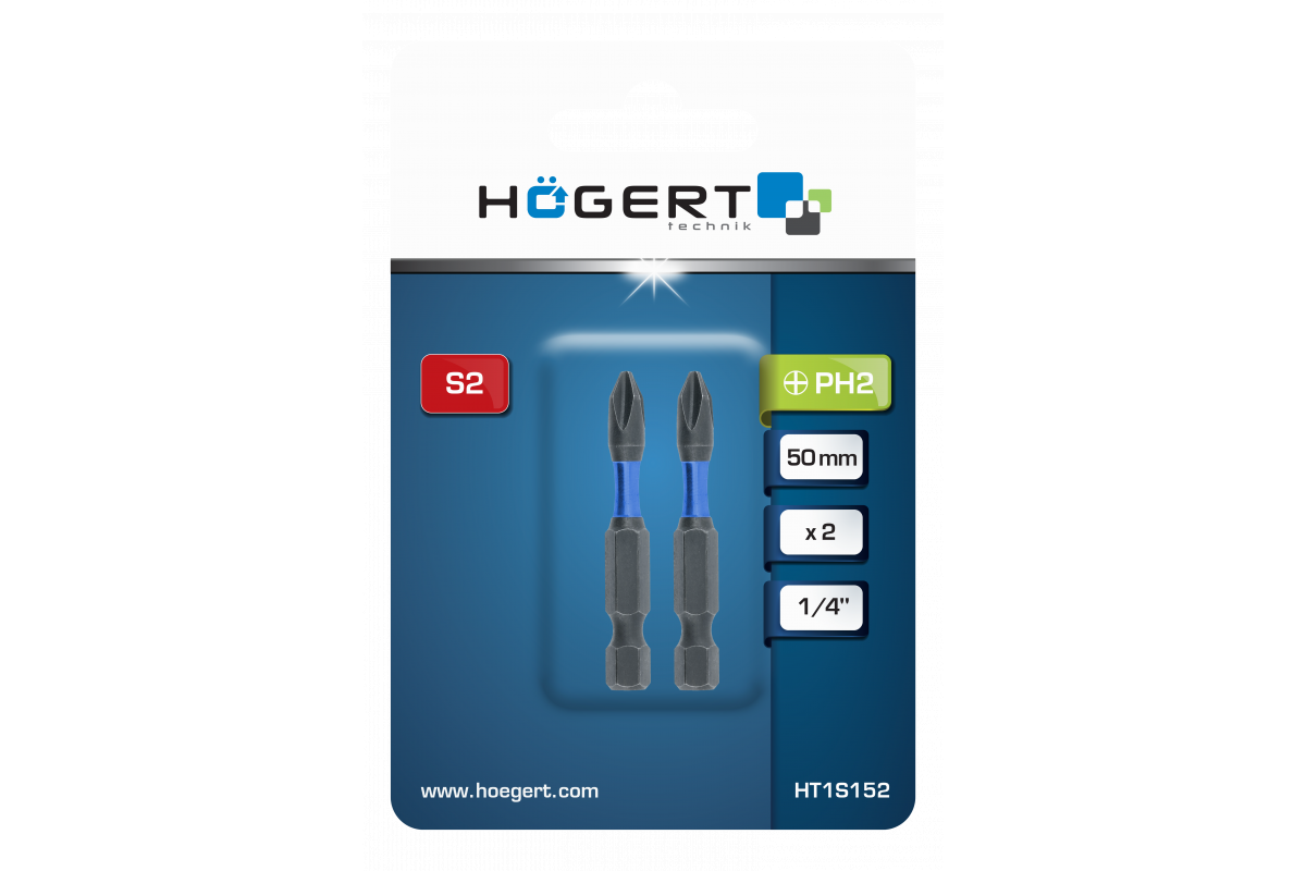 Križni bit za električne odvijače Hoegert HT1S152 PH2 1/4″ S2 50mm 2 kom