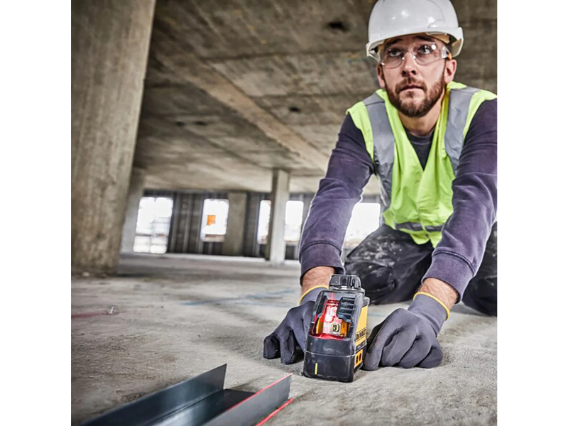 Ovaj laser s crvenim križnim linijama projektuje svijetle horizontalne i vertikalne linije ukrštanja za različite primjene niveliranja i rasporeda. Čvrsto je napravljen sa prelivenim kućištem i može izdržati pad do 1 metar. Kada se koristi sa detektorom, ovaj laser može postići domet do 165 stopa. Detektor se prodaje zasebno.