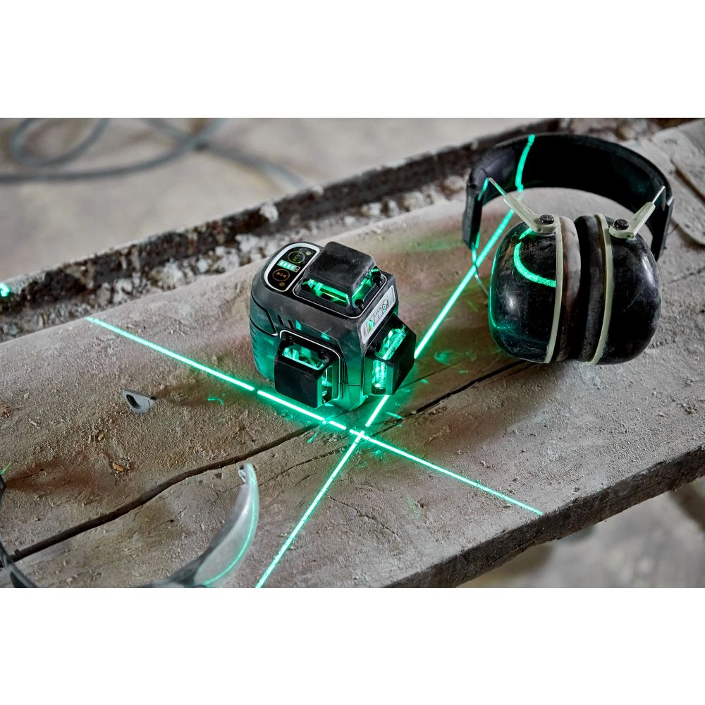 Trodimenzionalni, praktični laser s jednim horizontalnim i dva vertikalna zelena laserska kruga, kompaktnim stativom od 150 cm i sveobuhvatnim asortimanom dodatne opreme – sve što vam je potrebno za zahtjevne projekte