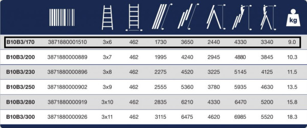 Ljestve – merdevine kombinirane 3 sekcije STS B10B3/170 1.7m 3×6