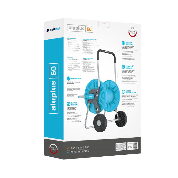 - zahvaljujući aluminijskoj konstrukciji, kolica za crijeva su lagana i potpuno otporna na koroziju