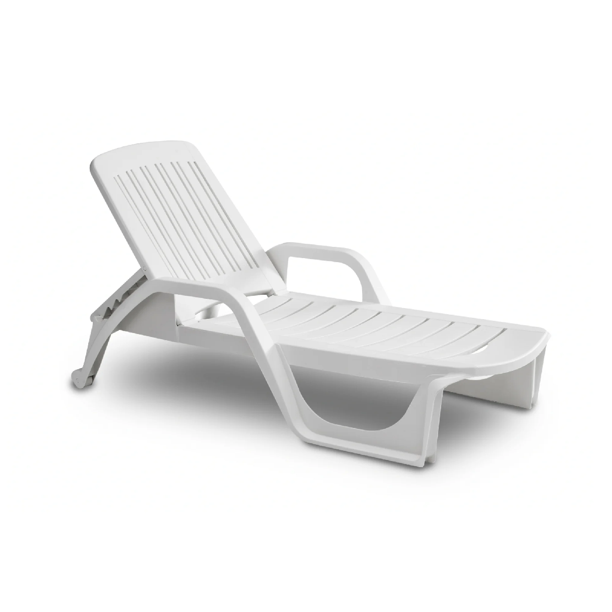 Plastična ležaljka sa mat završnom obradom. Smola koja se može reciklirati. Podesivi naslon: maksimum 94 cm – minimum 30 cm.